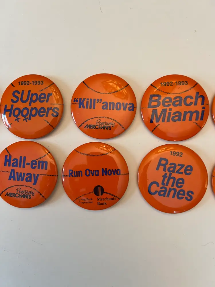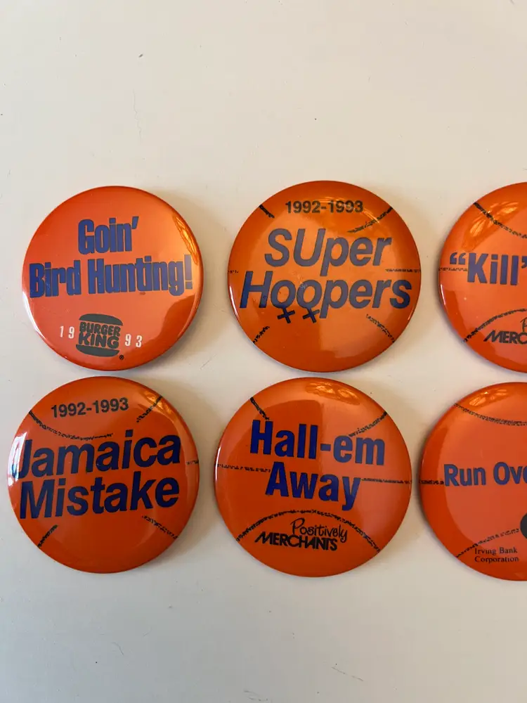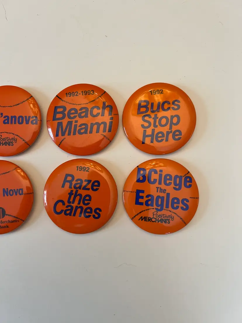 Vintage Syracuse Orange early 1990s NCAA Men's Basketball Collector's Pins - Set of 10 2.25" in diameter Perfect gift for the SU fan!! One is a lacrosse pin Pre owned- worn- but good condition. Set 9