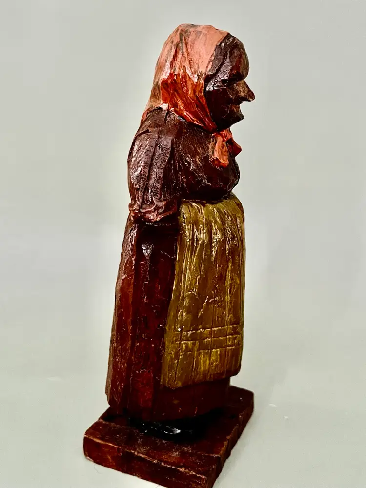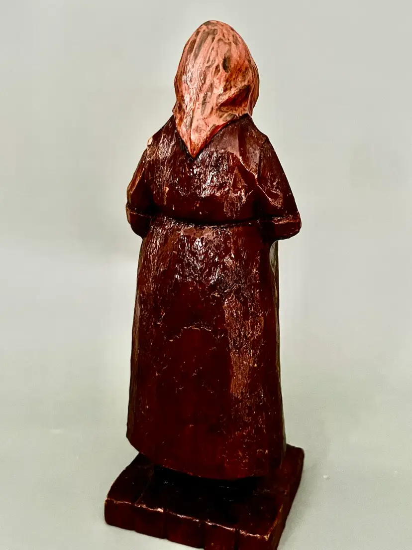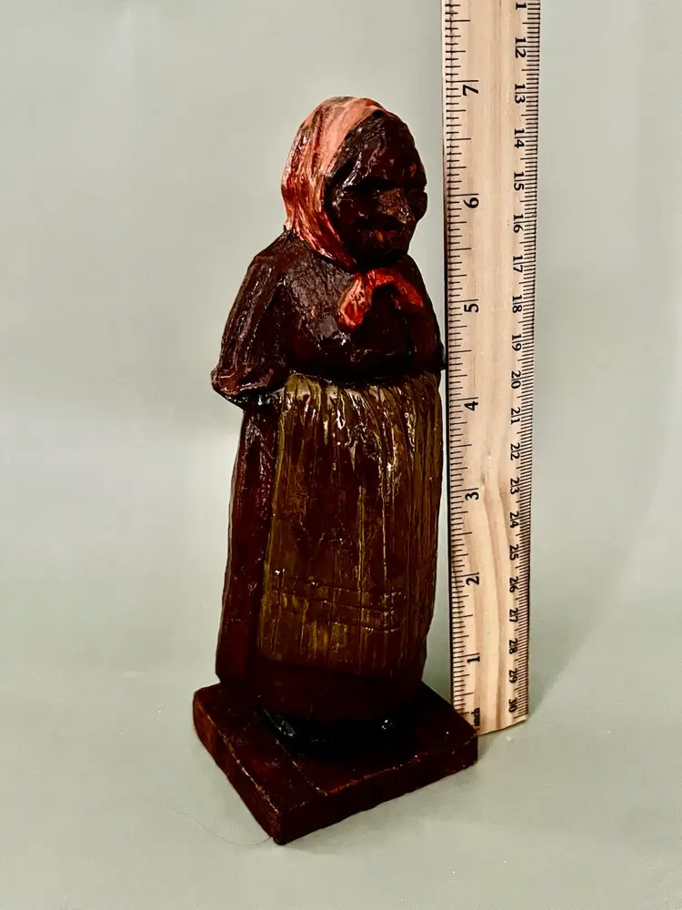 This is a figurine likely made by the Syracuse Ornamental Company, commonly known as Syroco. The company was founded in 1890 and was known for producing decorative items from a molded wood-pulp material called "SyrocoWood" that resembled hand-carving.