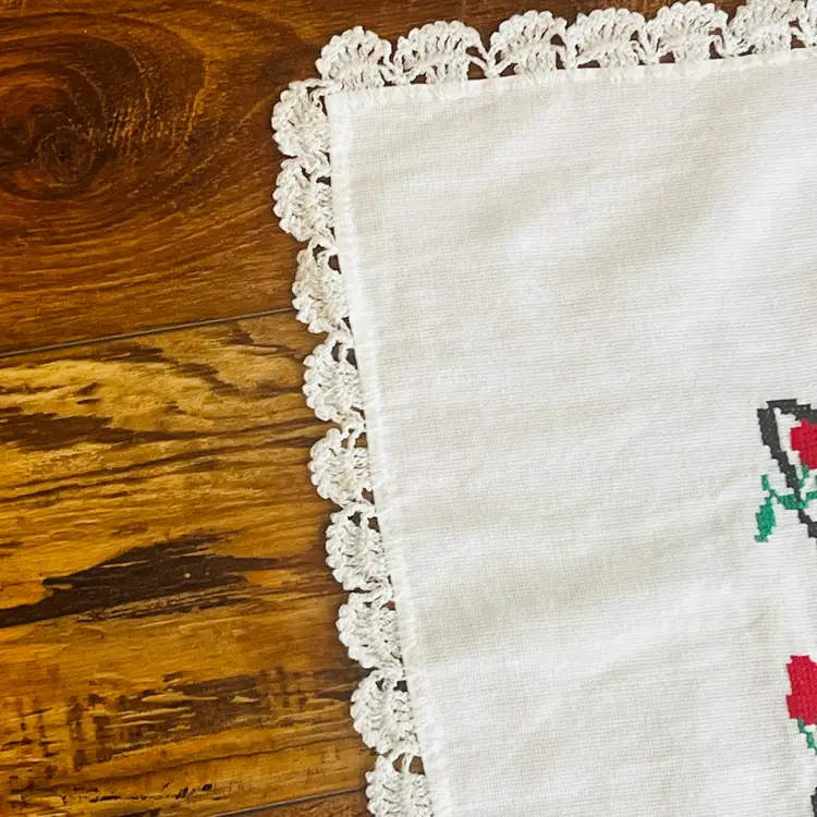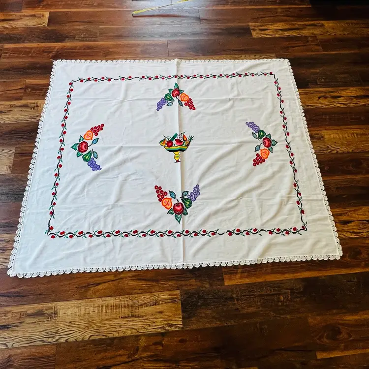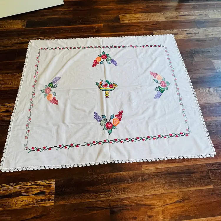 In good condition. There is a few stains and a glass ring mark. They are really hard to see. Pictures of the stained areas are in the photos. May be hard to see.