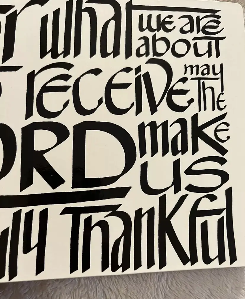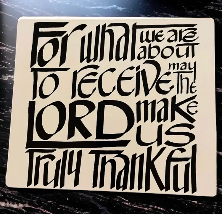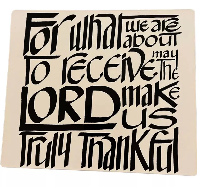 Vintage Tabletop Trivet with Thankful Prayer, White with Black Lettering