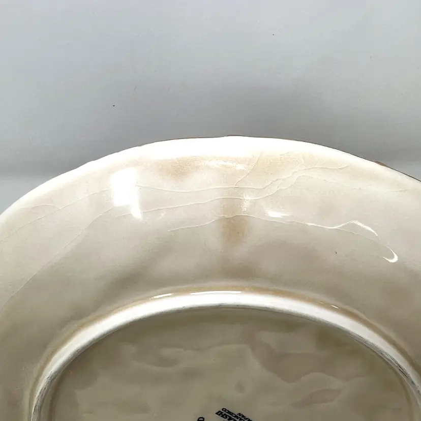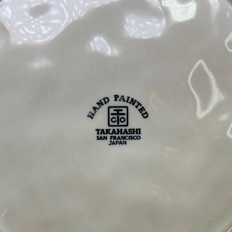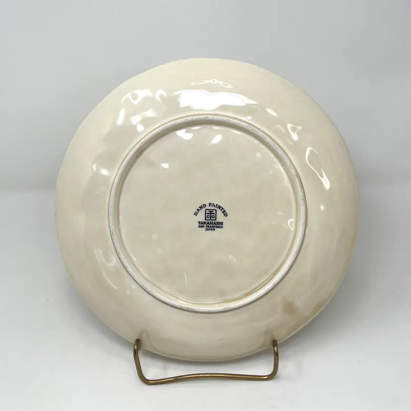 • Diameter: 8 inches, Weight: 13 oz • Maker: Takahashi (San Francisco), Made in Japan • Pattern: Antigua • Marking: “Hand Painted – Takahashi – San Francisco – Japan” stamp on reverse • Era: Circa 1980s–1990s • Material: Glazed ceramic • Finish: Embossed relief, hand-painted