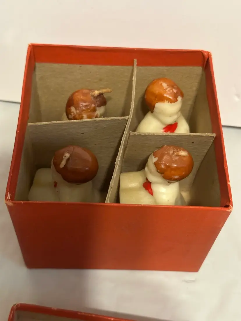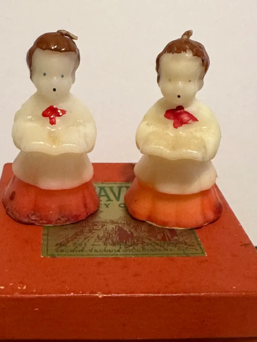 1960’s vintage Tavern Novelty Christmas candles in original box. They are choir boys. They each measure 2.75” tall. All unused (not lit).