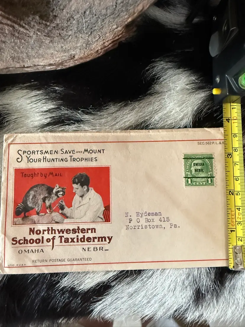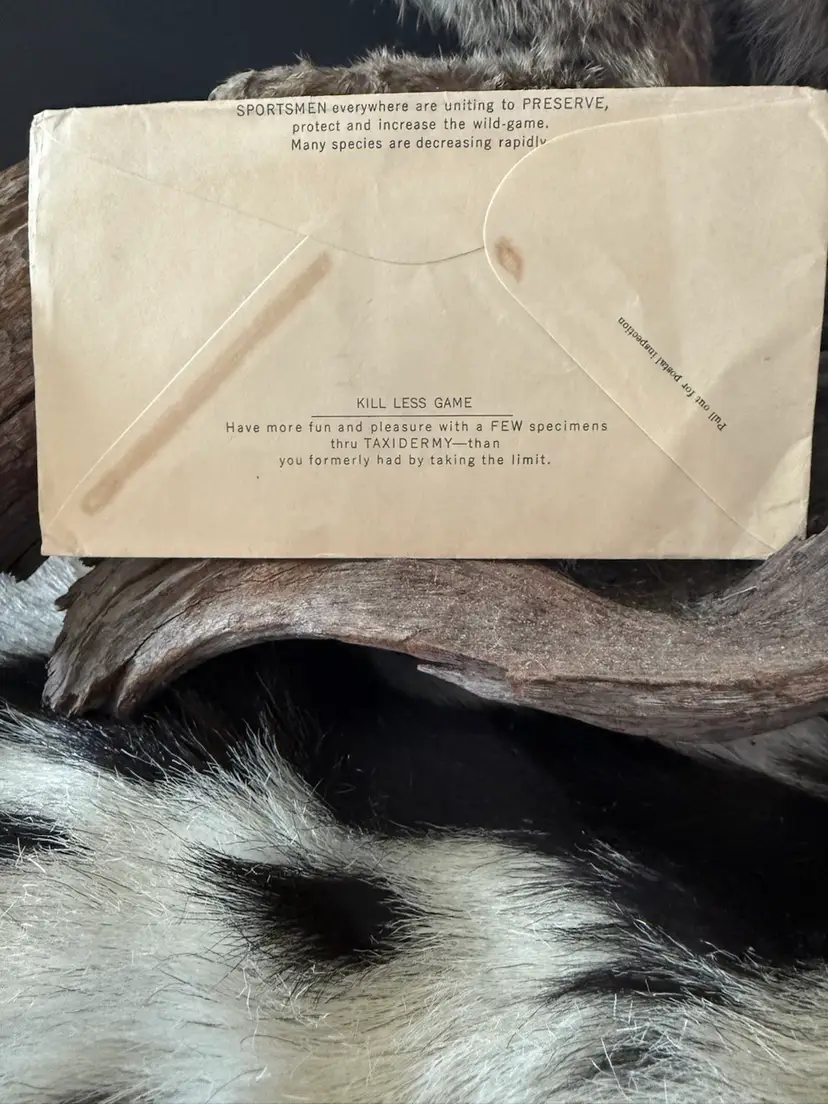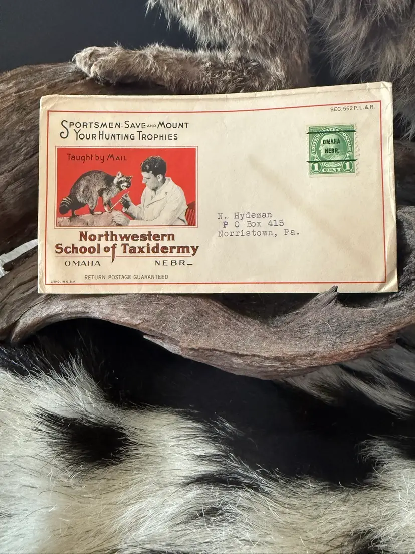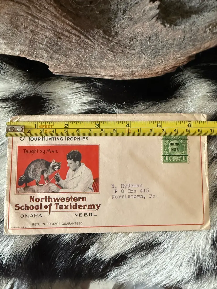 Vintage envelope from Nebraska School of Taxidermy. Great graphics and condition. Free shipping Taxidermy Weird Odd