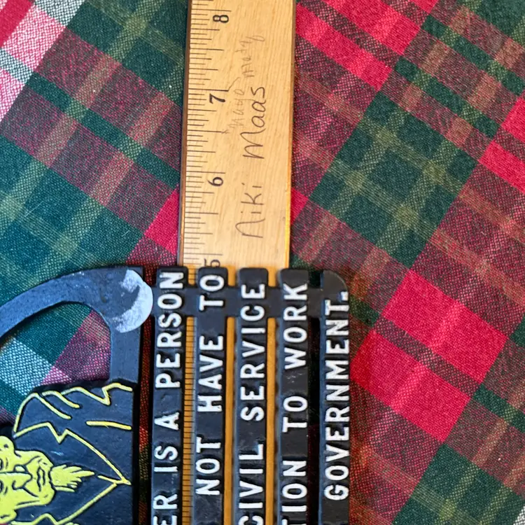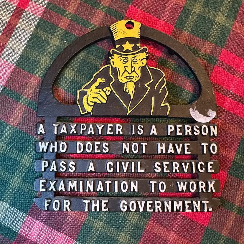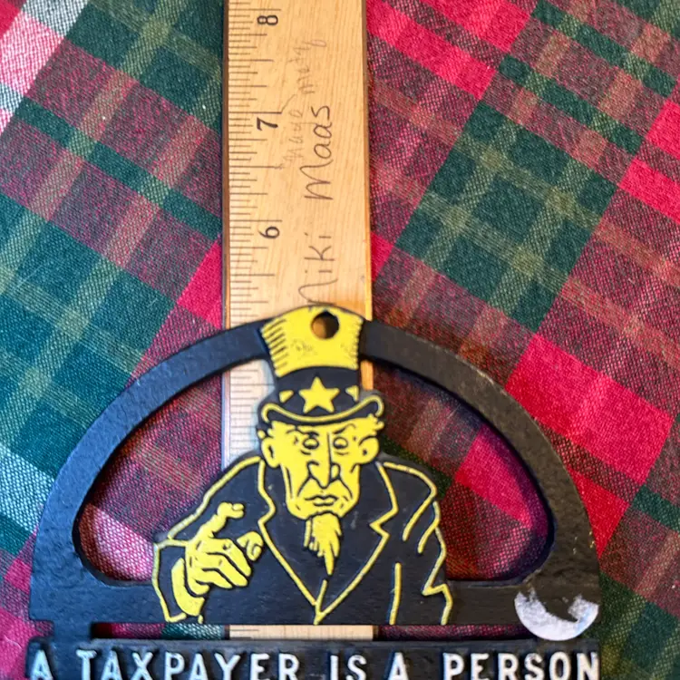 A vintage humorous trivet or wall hanging. Measures 5 1/4" tall x 5" wide.