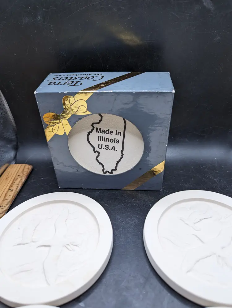 This is a lovely Vintage Terra Coasters Set of 4 Duck Design in Box New Old Stock. No chips or cracks. Please see all pictures for condition and measurements.