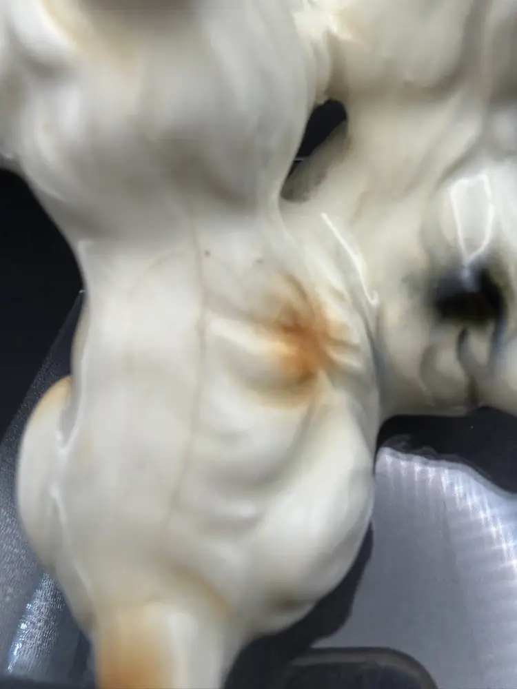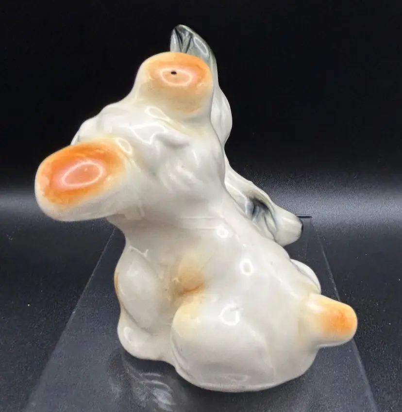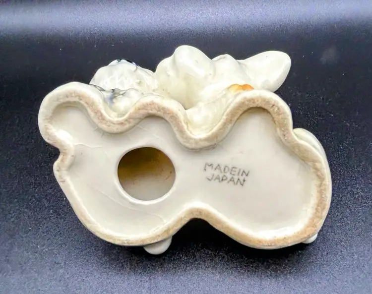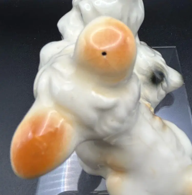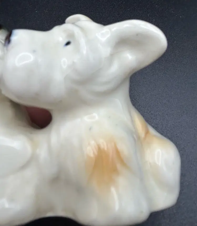 This vintage figurine features two adorable terrier dogs, made of high-quality porcelain and crafted in Japan. The intricate details of these small puppies is sure to delight any collector or dog lover. Measuring at about 3x3 inches, this figurine is the perfect addition to any collection or as a standalone display piece. There are some condition issues with crazing.