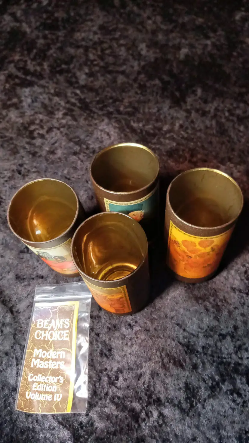 Add a touch of nostalgia to your barware collection with these vintage Beam's Choice Collector's Edition glasses. Each glass features unique artwork and a classic design, perfect for enjoying your favorite spirits or displaying as a collectible. This set includes four glasses and a Beam's Choice Modern Masters Collector's Edition Volume IV card.