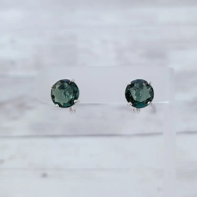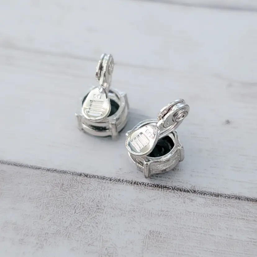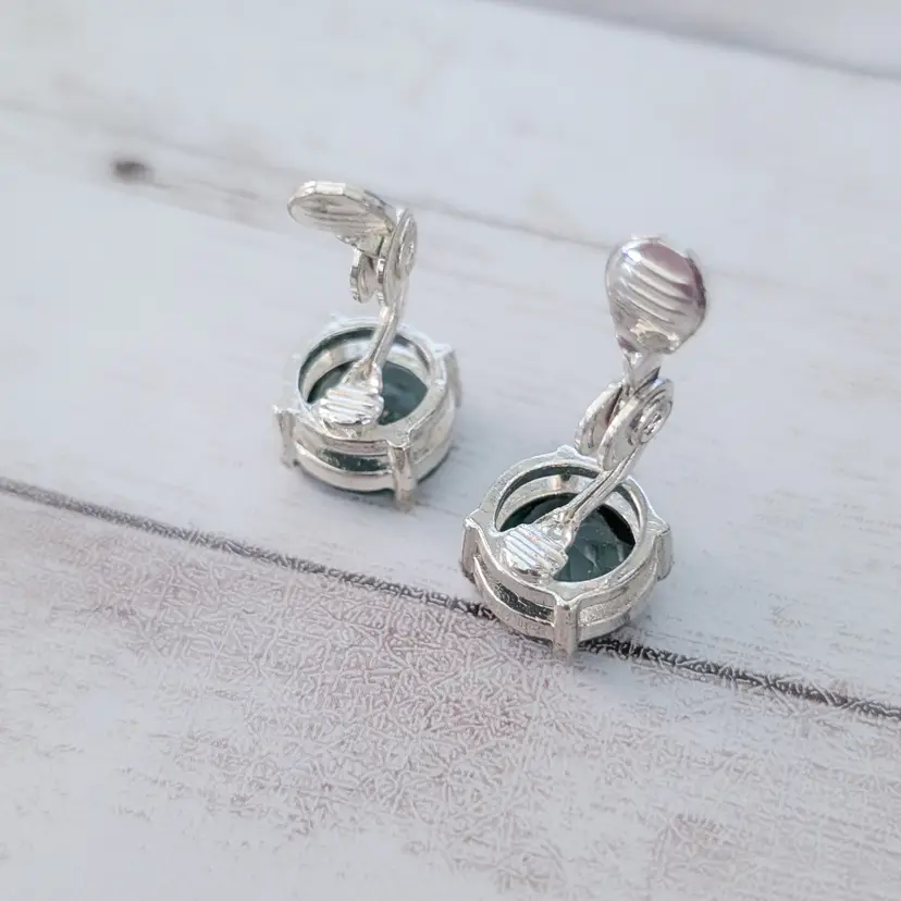 Vintage The Jewelry Group Clip On Earrings Green Gem with Silver Tone Stylish