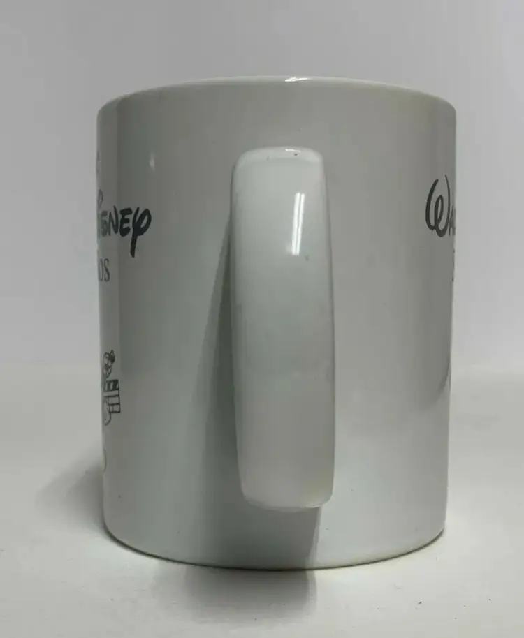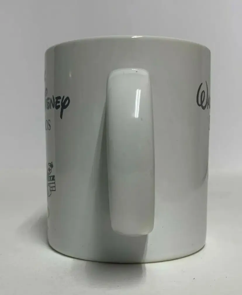 This vintage mug from The Walt Disney Studios is a must-have for any Disneyana collector. Featuring a classic Mickey Mouse design, this mug is perfect for sipping your favorite hot beverage. This mug holds approximately 8-10 oz and has no chips or cracks. Made for contemporary use, this mug is made to last and will be a great addition to your collection. Don't miss out on the chance to own this timeless piece of Disney magic.