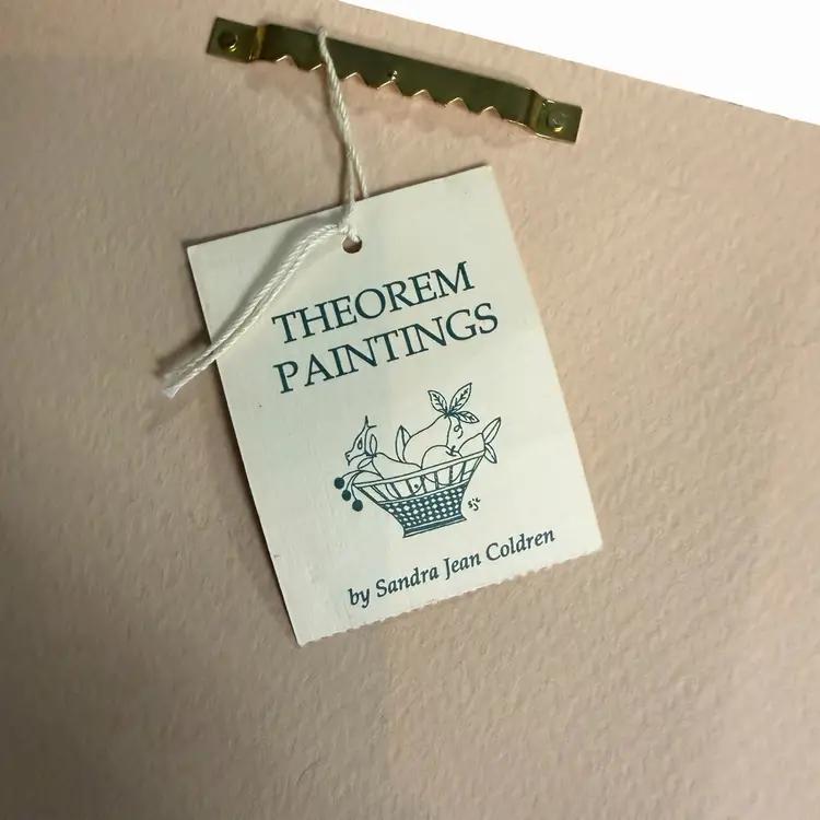 Created by Sandra Jean Coldren of Theorem Paintings, this piece is signed SJC on the front and dated 1996 on the back. It still has the original hanging tag attached, which is a nice bonus for collectors.