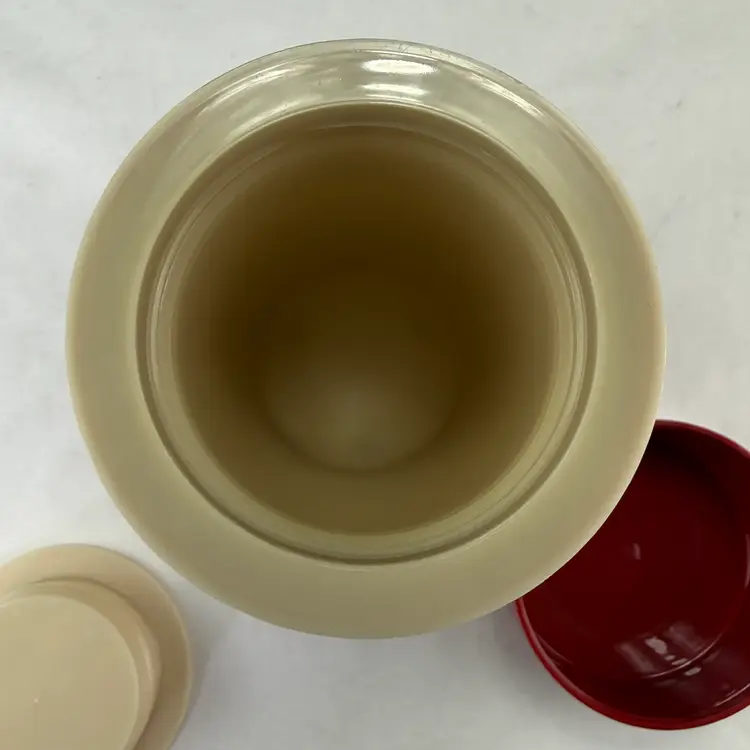 This vintage thermos combines functionality and retro charm. Its durable vacuum insulation maintains hot or cold temperatures, making it suitable for beverages on the go.