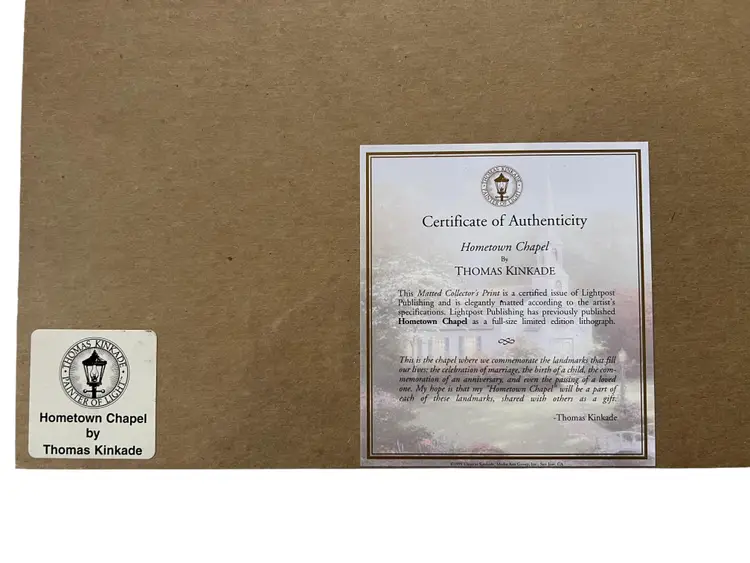 Vintage matted and sealed Thomas Kinkade print Hometown Chapel c. 1999