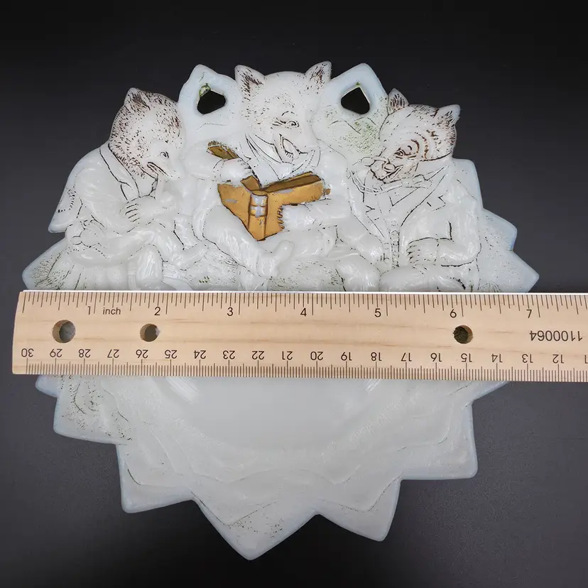 Unmarked, no chips or cracks. The paint is pretty worn. Manufacturing flaw, black mark and wrinkle in glass as seen in picture. Measures approx 7 inches. Thank you for looking and have a great day!