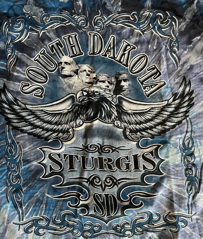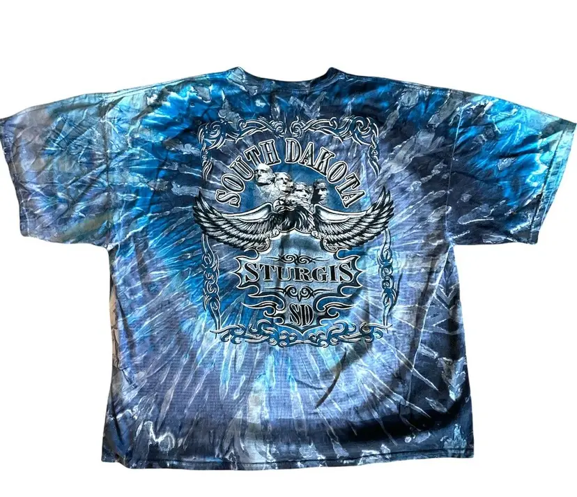 – Pattern: Tie Dye – Sleeve Length: Short Sleeve – Character: Sturgis – Size: 3XL – Color: Blue – Material: Cotton – Brand: Vintage – Fit: Regular – Size Type: Regular – Graphic Print: Yes – Department: Men – Type: T-Shirt – Theme: Motorcycle