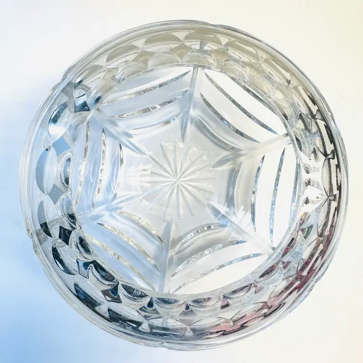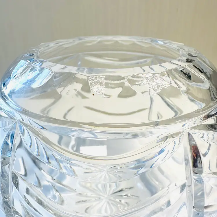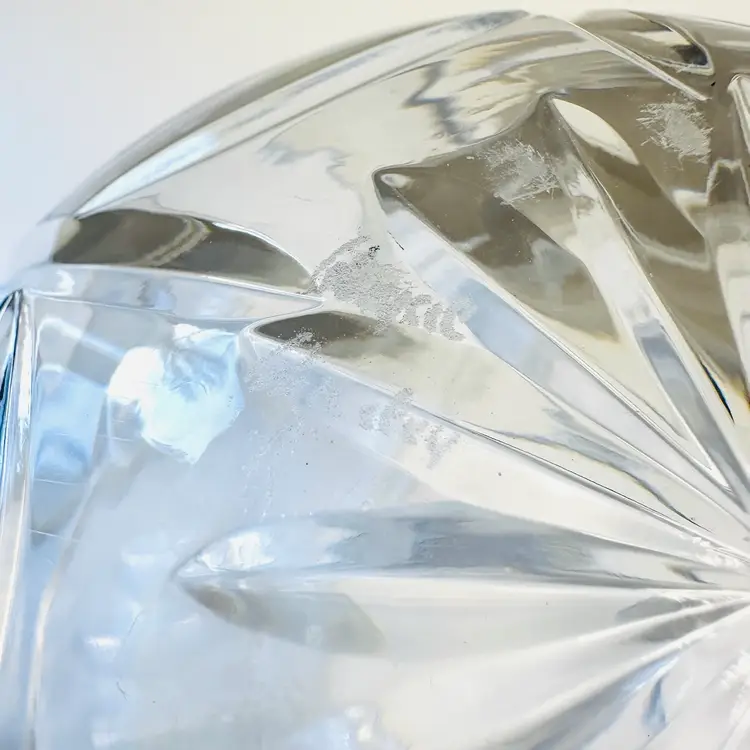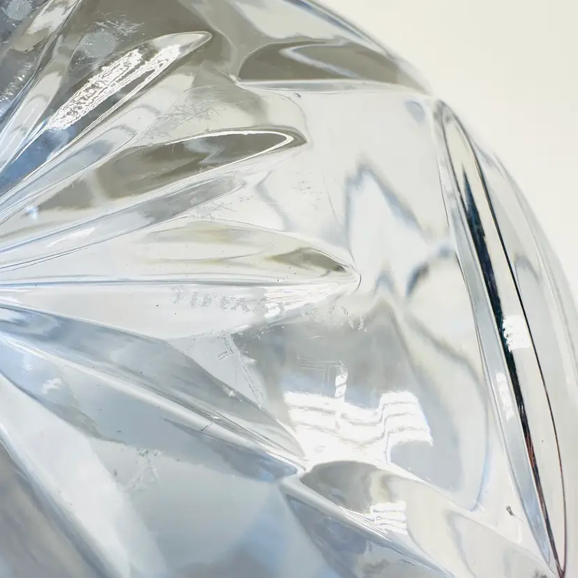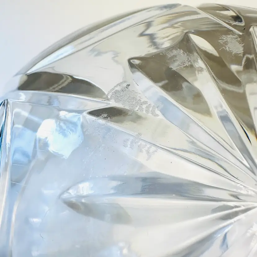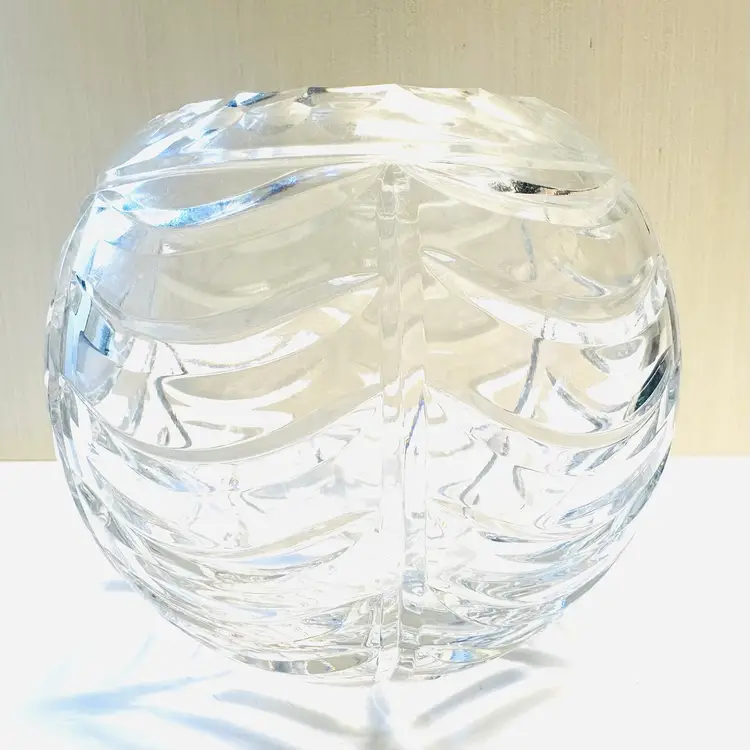 Previously owned Tiffany and Company Royal Brierley crystal goble or rose bowl vase with the swag or draped pattern. There is a maker mark on bottom (see pictures).