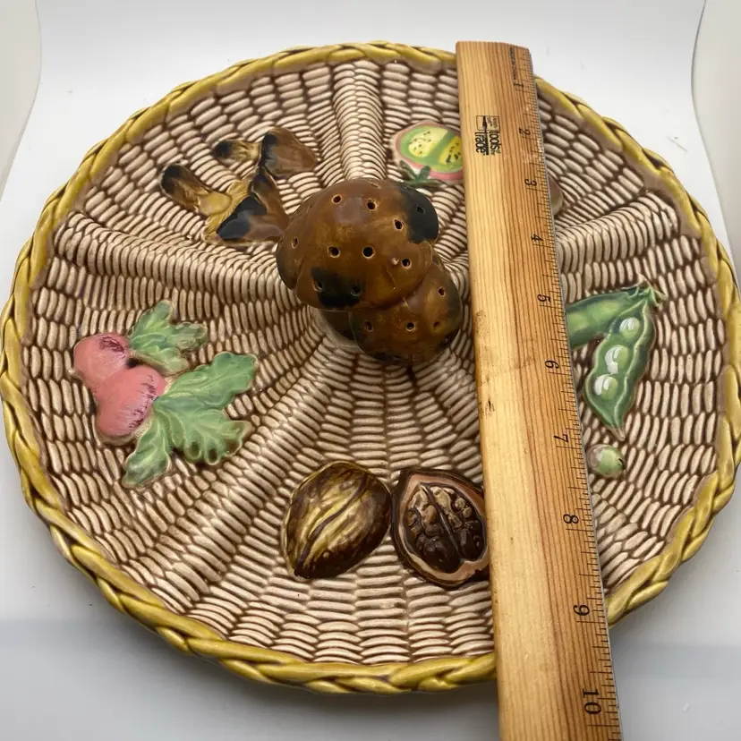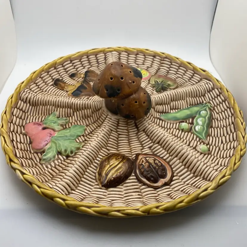 Vintage Tilso Japan Divided Serving Tray with Mushroom Toothpick Holder. 10in