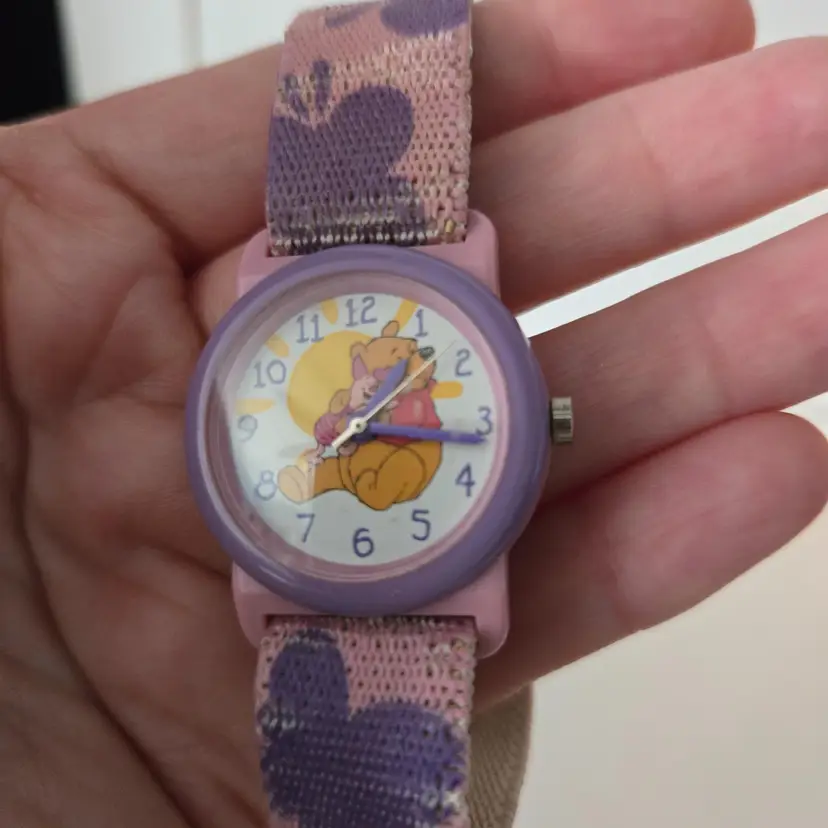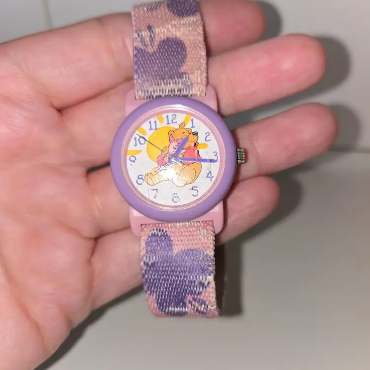 new batteries installed works elastic band has wear small scratch on face (picture 2 in Pooh's shirt on the right)