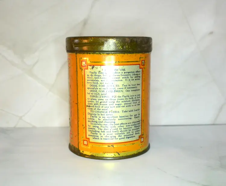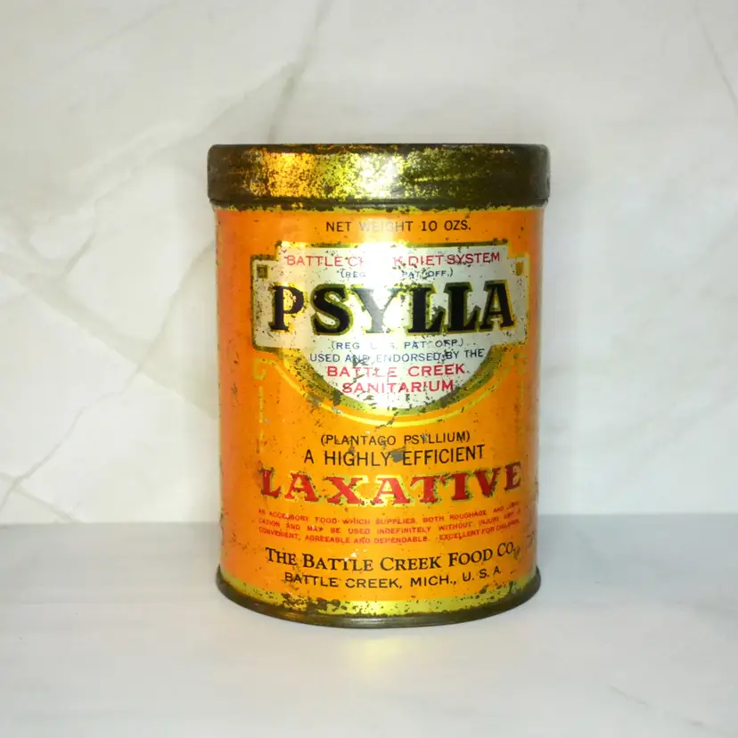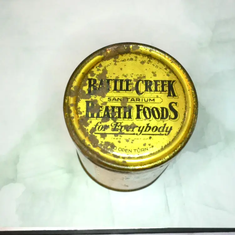 This tin with bold orange color ( sure put in in a Halloween Display!), mixed serif fonts, and institutional endorsements are consistent with 1920s–1930s medical packaging. Battle Creek Sanitarium was famously run by Dr. John Harvey Kellogg (yes, of cereal fame), and it was a hub for progressive health treatments in the late 1800s and early 1900s.