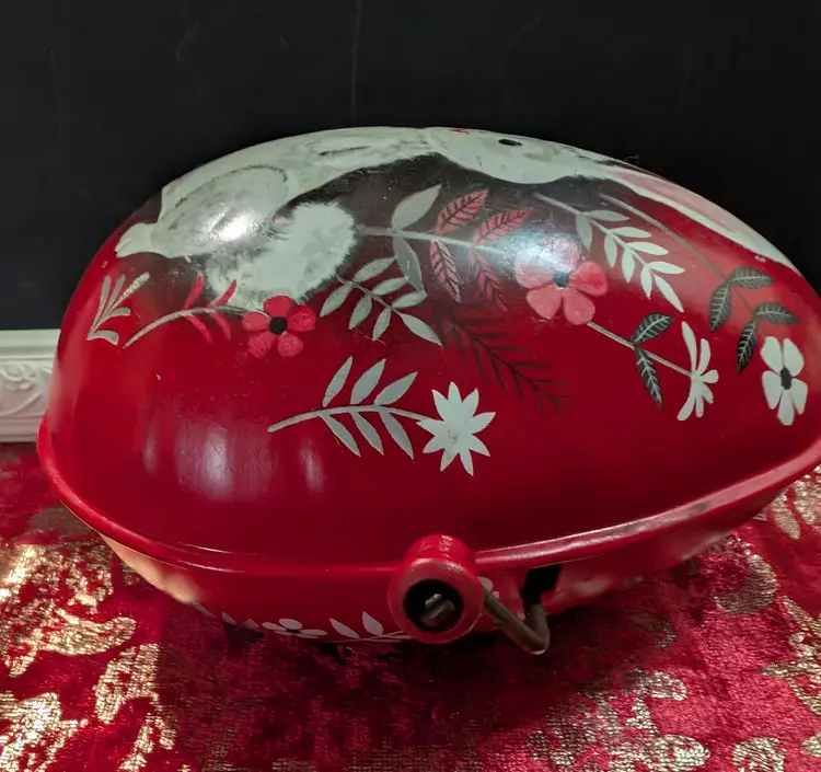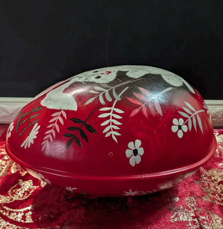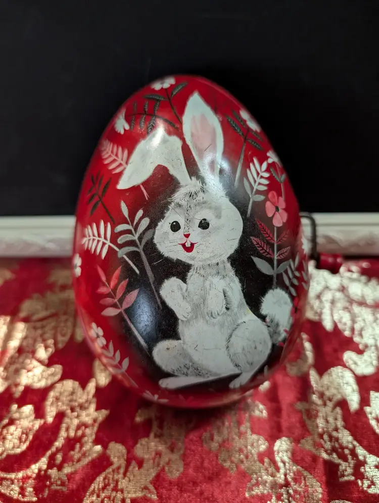 Charming vintage Easter egg music maker featuring a hand-painted bunny design. This delightful piece is perfect for adding a touch of nostalgia to your holiday decor. In great condition with vibrant colors and intricate details but does have 2 small dents on the bottom which is not noticeable at all and has no structural significant to piece but does make it AS IS. Measures approximately 6 inches in length and 4 inches height and 4 inches width.