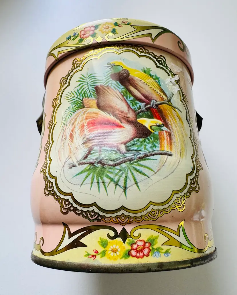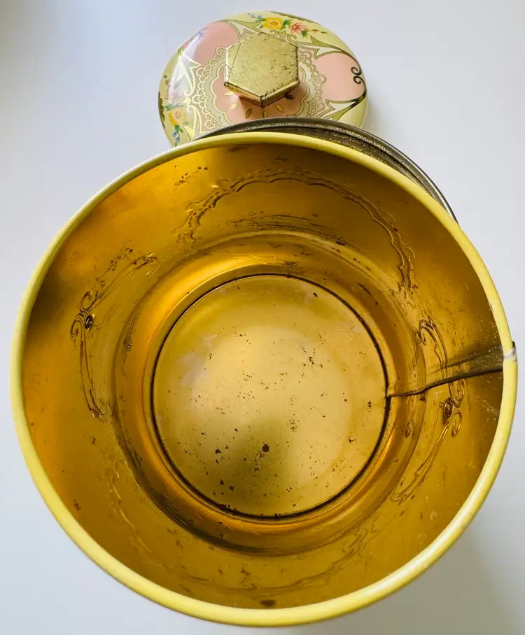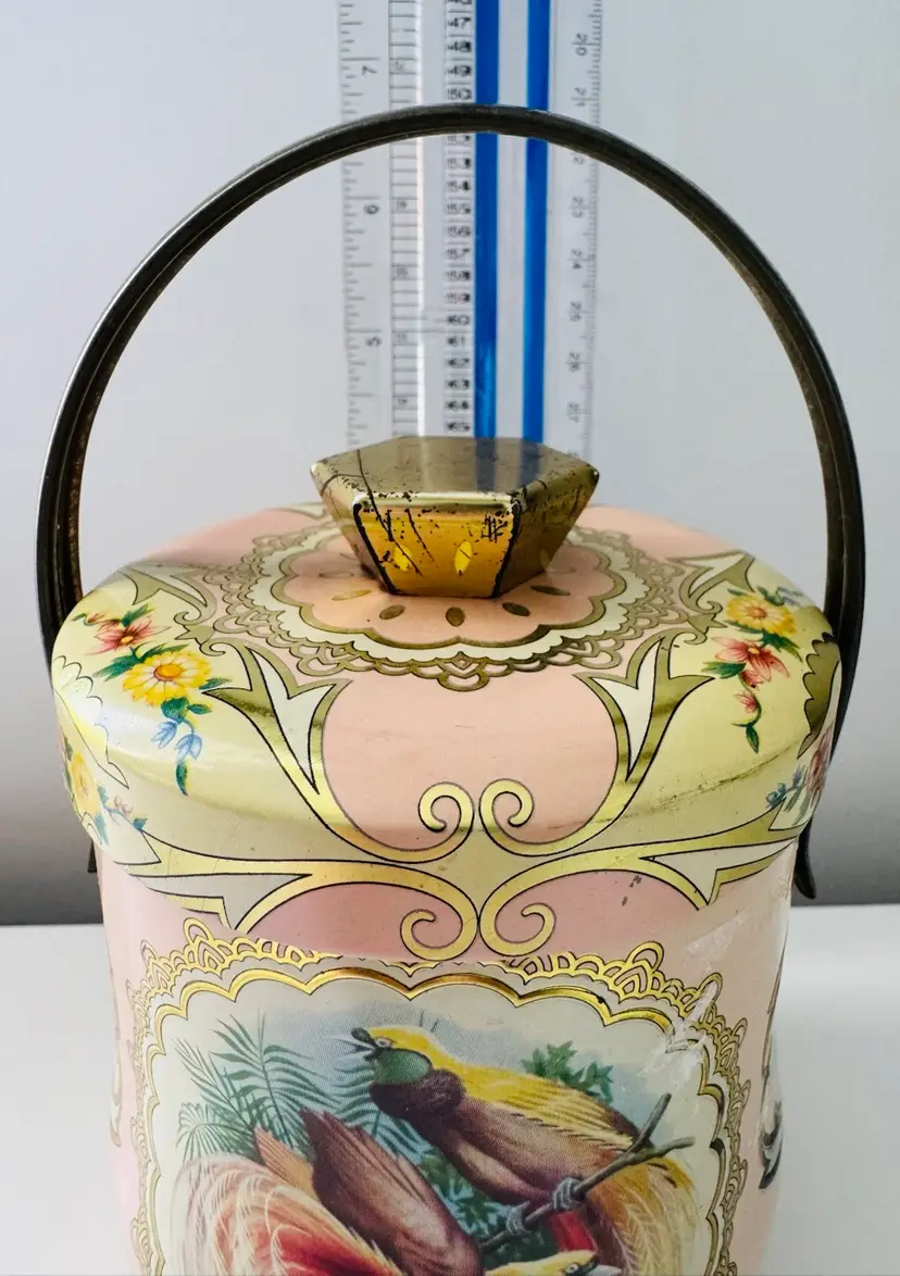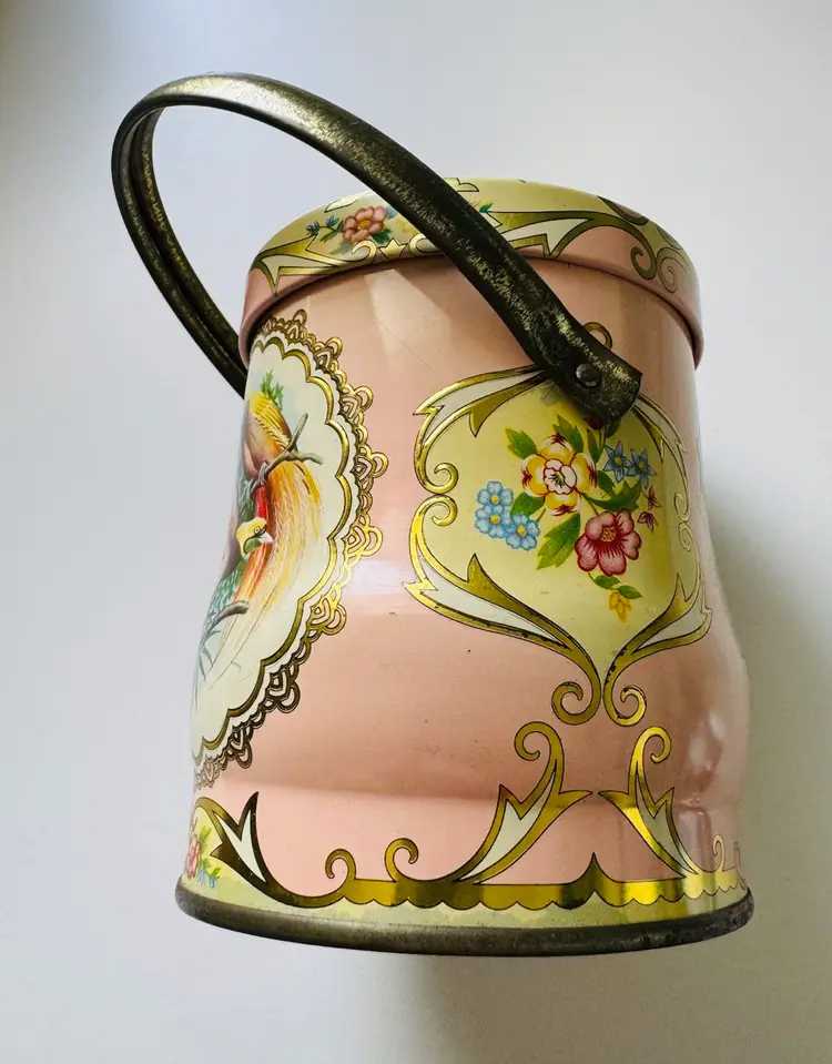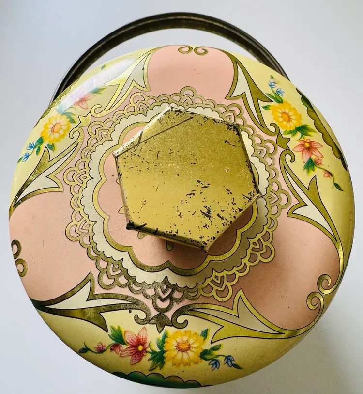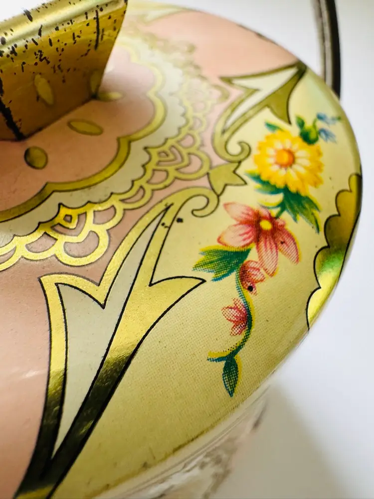 If you are looking for vintage, this is it! Beautiful detailed tin.
