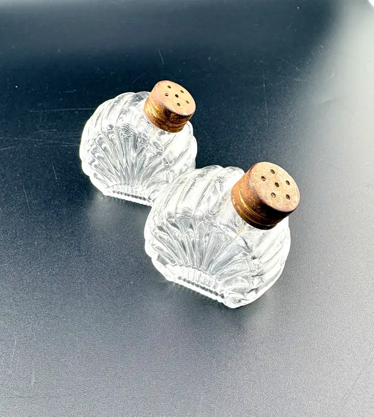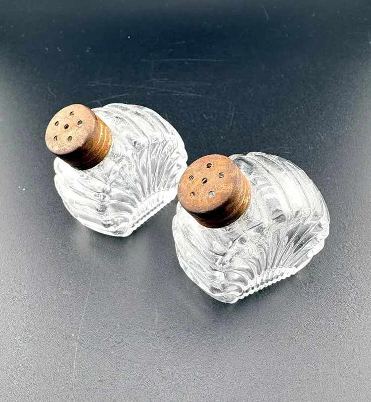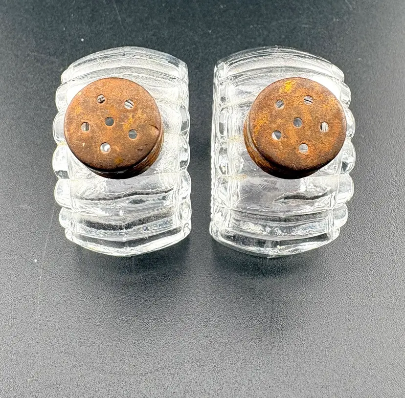 These are cute s&p shakers. The lids look oxidized but screw on/off with no problem. There are no chips or cracks.