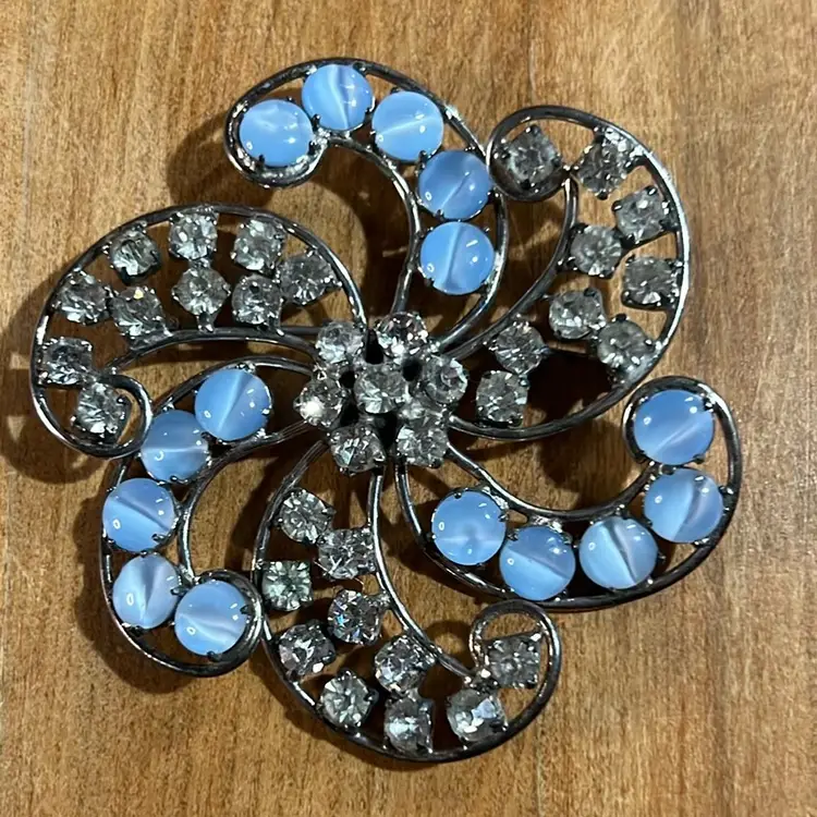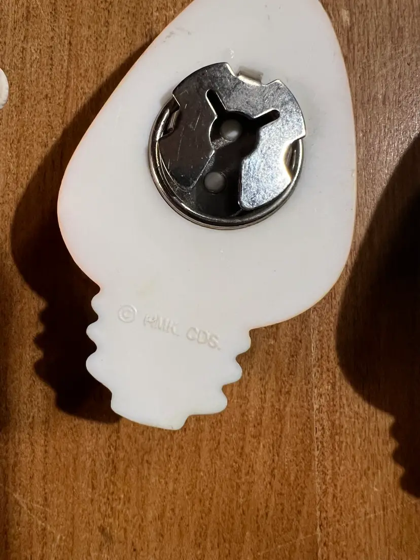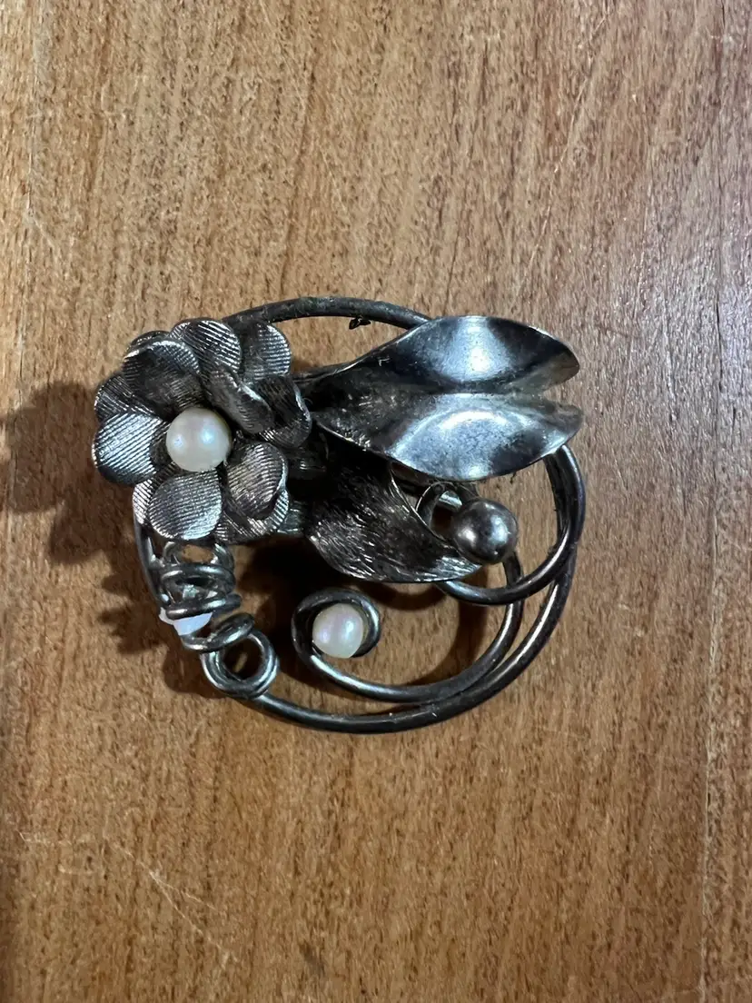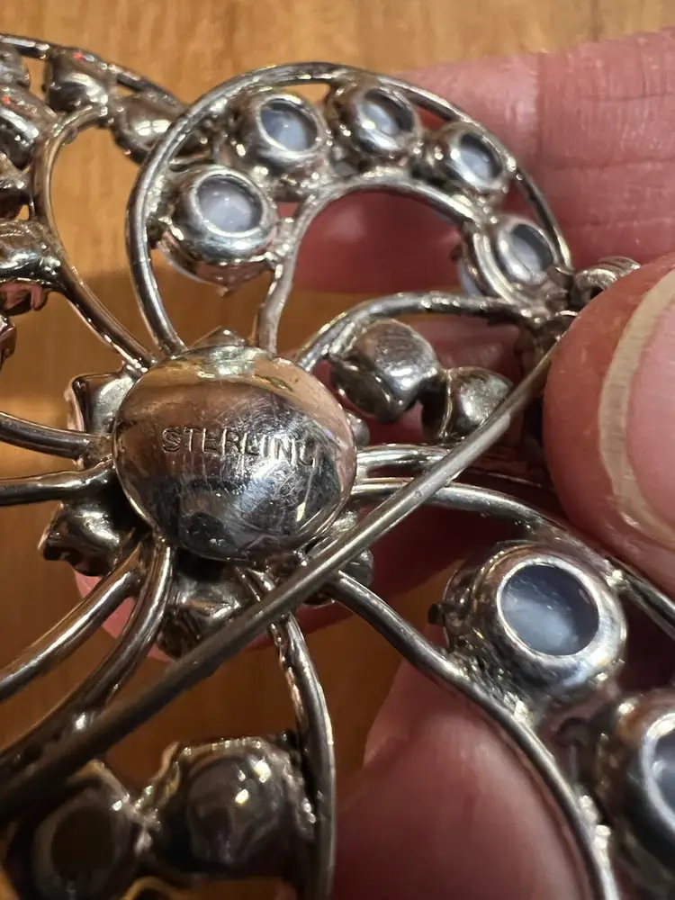 Large pin is marked sterling on the back. One other has a name on it. One pin is rusting on the back. 2 light bulbs are button covers.