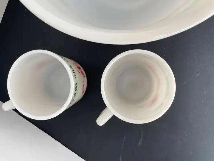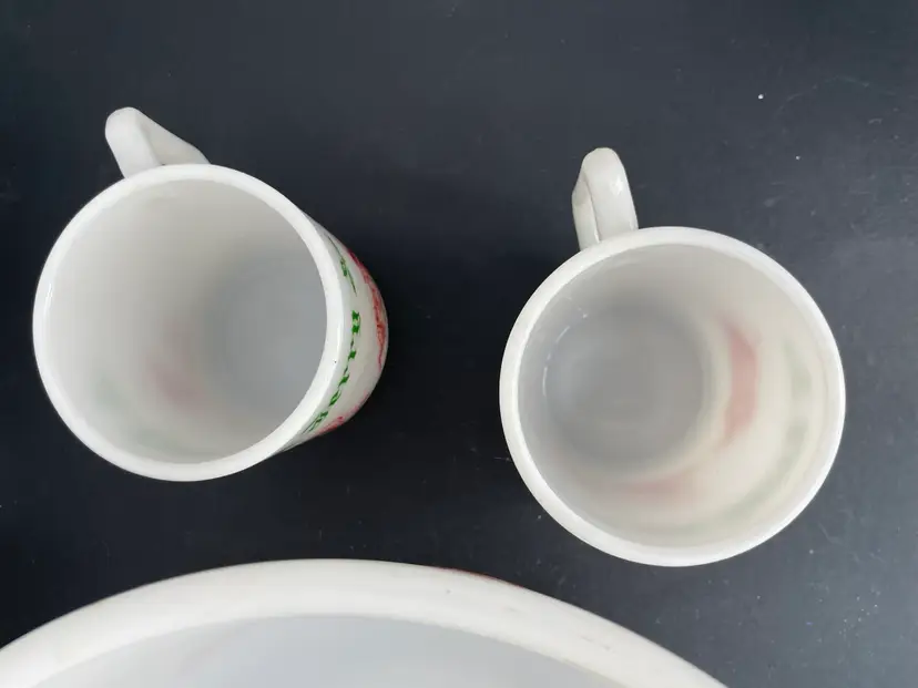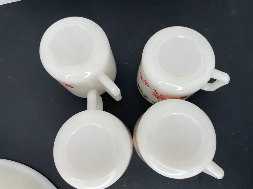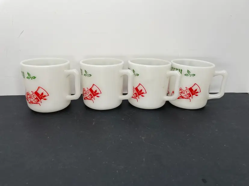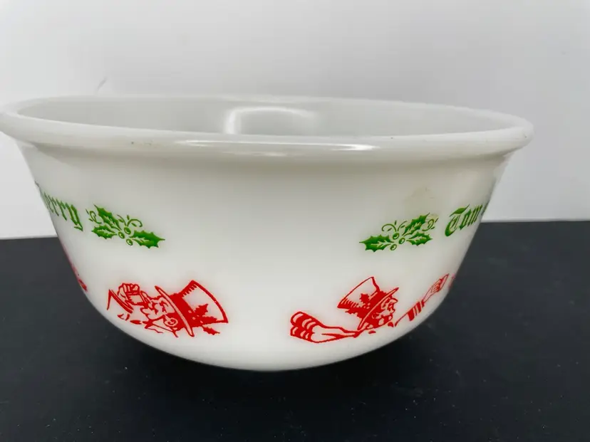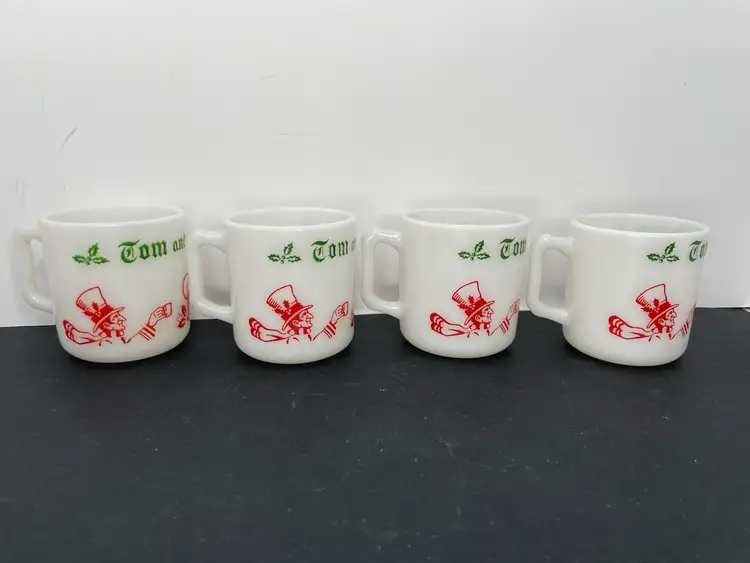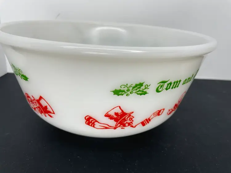 Add a touch of nostalgia to your holiday gatherings with the Vintage Tom and Jerry Christmas Punch Eggnog Bowl and Mugs set, crafted by Hazel Atlas. This charming collection features milk glass items that are sure to bring a smile to your guests' faces, with classic designs that hark back to the 1950s.