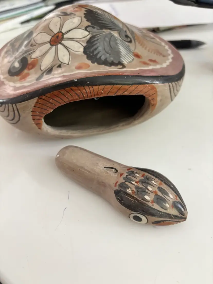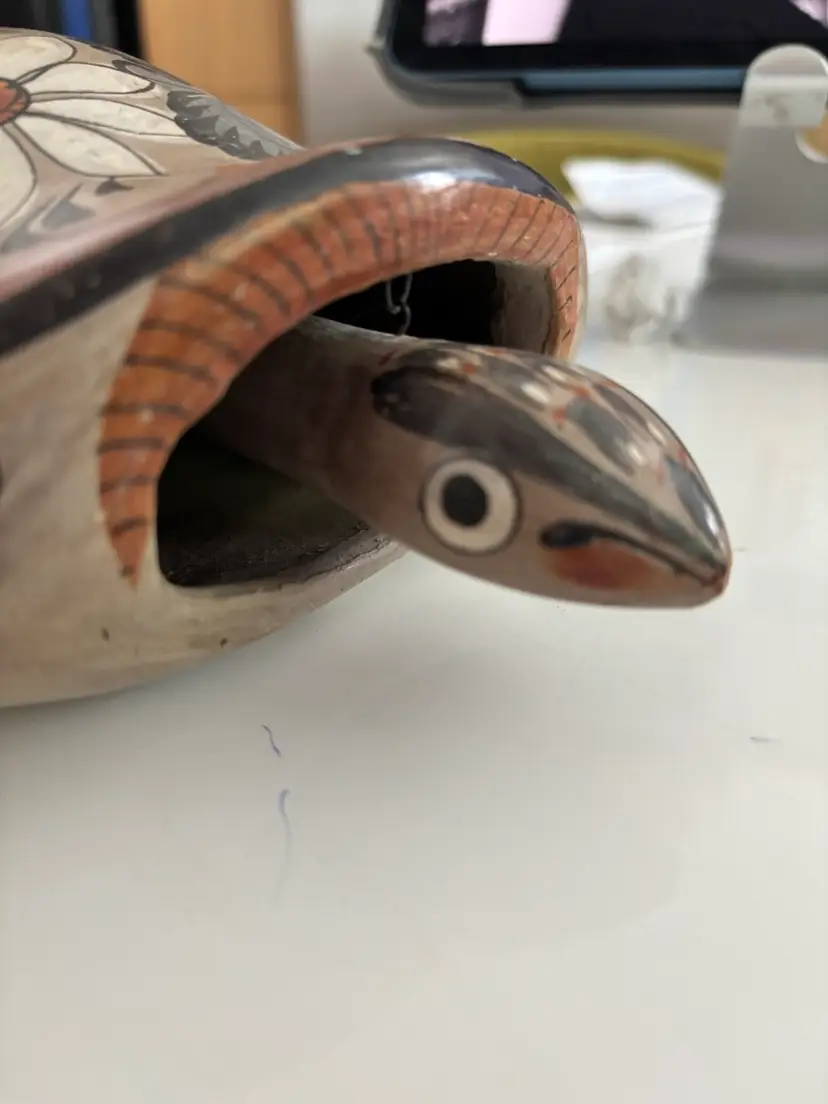 Shell measures approx 7” inc head = 8”. Nodding Head is removable and attaches in the shell. Not signed. Minor flea bites along side.