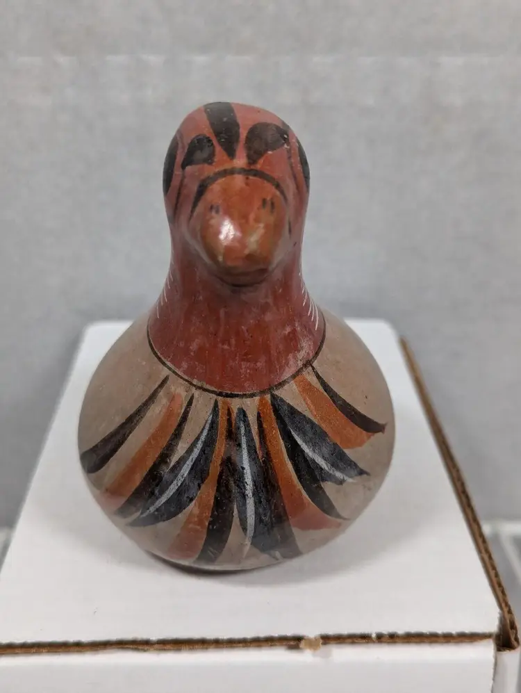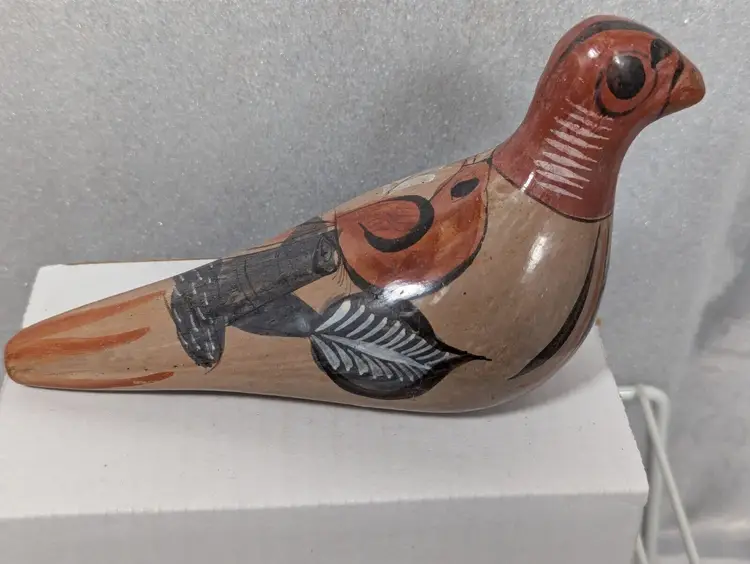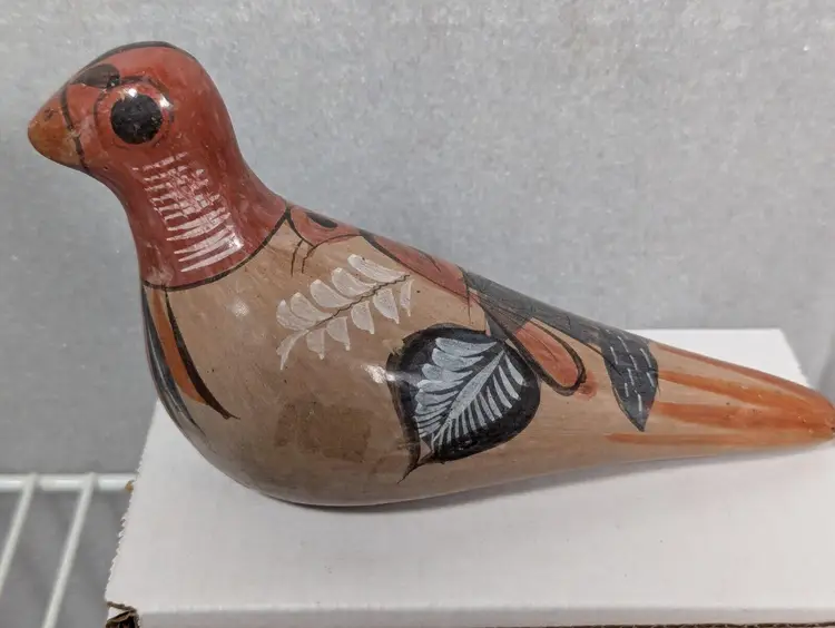 This handmade item is a must-have for collectors of Latin American pottery or those who appreciate unique and beautiful pieces. The authenticity of this Mexican artifact is guaranteed, and it is sure to be a conversation starter. Add a touch of Mexican culture to your home with this beautiful vintage Tonala hand-painted dove bird.