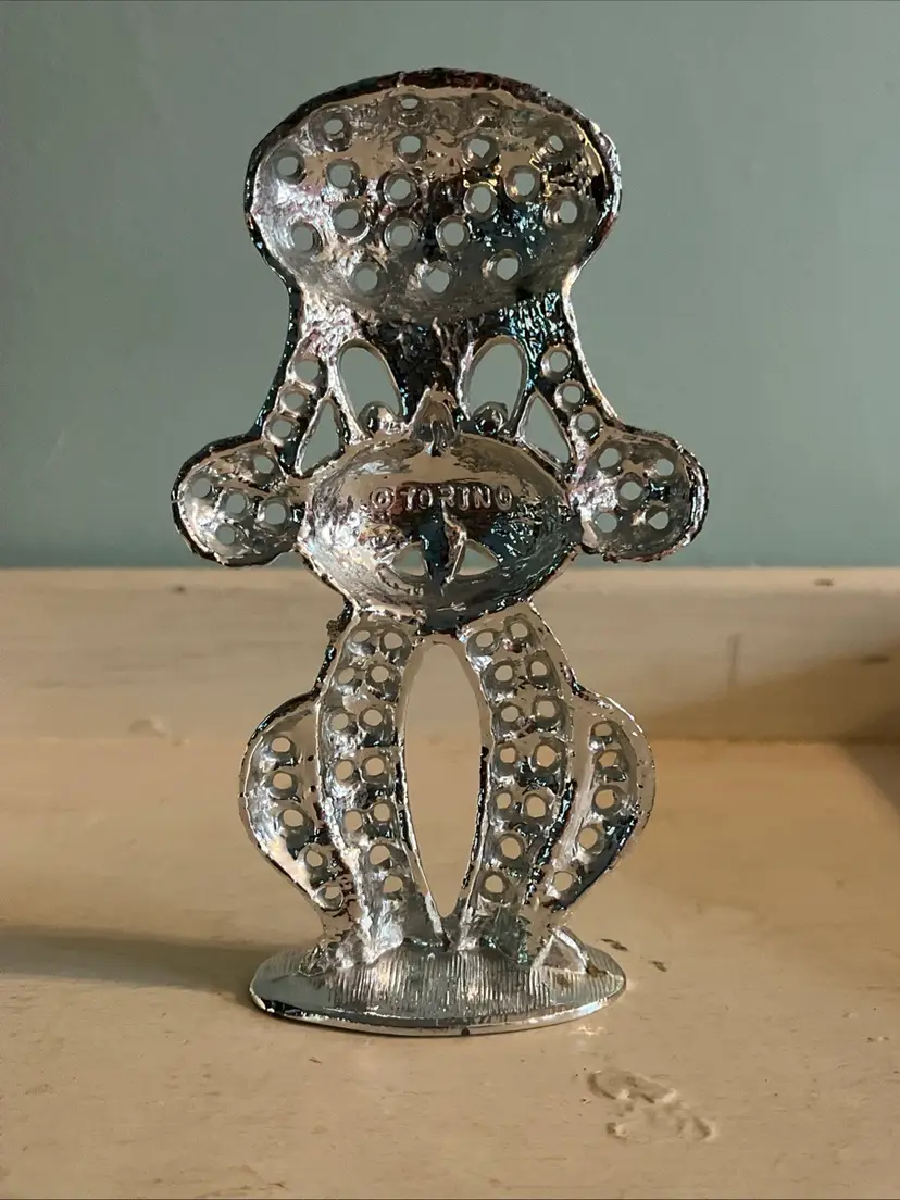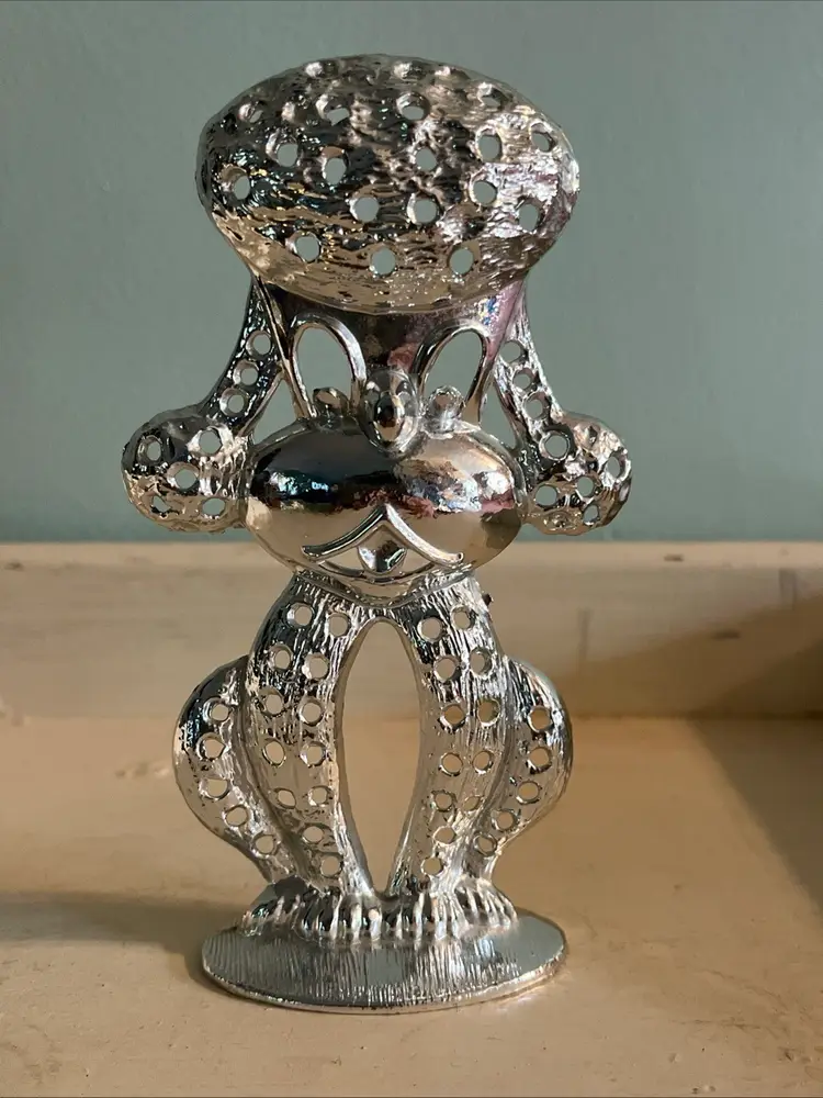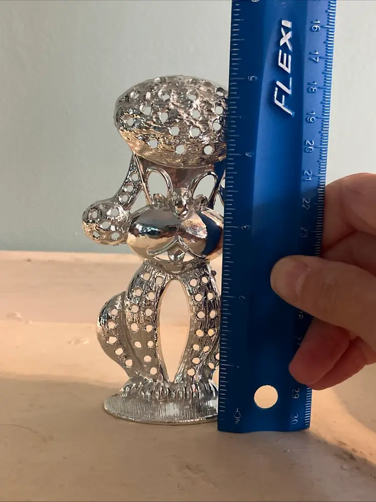 Vintage Torino silver tone metal poodle earring display holder. Approximately 5" tall. (I counted 69 holes) Pre-owned and in good, vintage condition. Expect normal wear such as scuffs or scratches. See photos and ask any questions prior to purchase. Thank you for your interest in this item. I try my best to accurately describe each item that I list for sale including any known defects. All items are sold AS IS. What you see in the photos is exactly what you get, nothing more, nothing less. If an item is not specifically listed as new then it is in pre-owned, used condition and wear should be expected. I do not accept returns so please take your time to review the item description, condition description and photos.