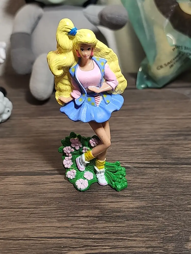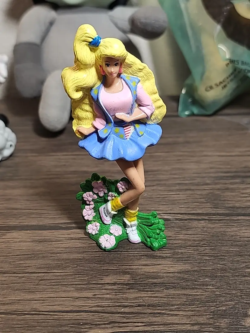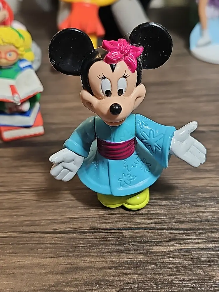 This vintage toy lot includes 11 toys from the 80s and 90s featuring popular characters like Disney's Minnie Mouse, Barbie, and Rainbow Brite's Murky. The lot is made up of 3-inch plastic figures of various brands, with a focus on Hallmark and Disney franchises. These collectible items are perfect for nostalgic fans of classic dolls and playsets from the 1980s, adding a touch of retro charm to any collection.