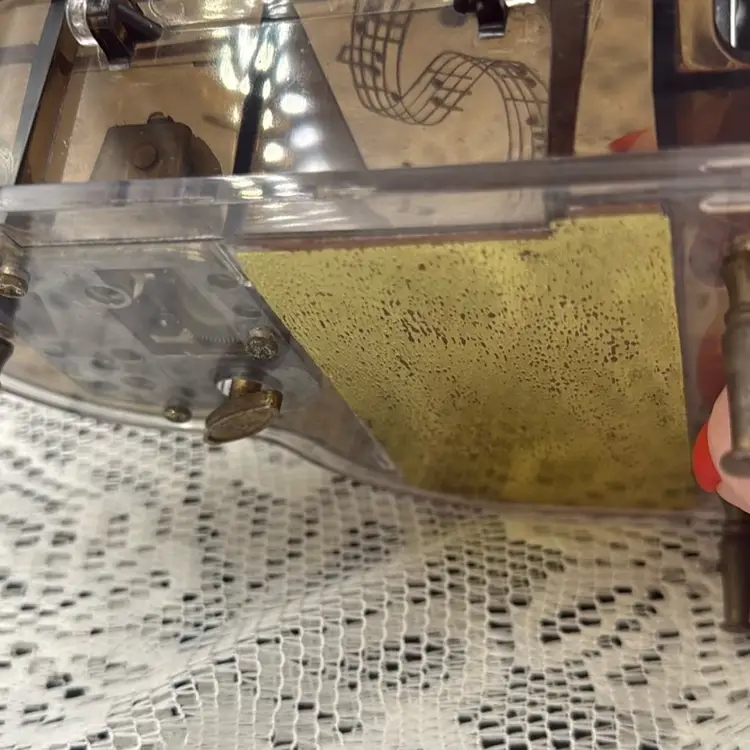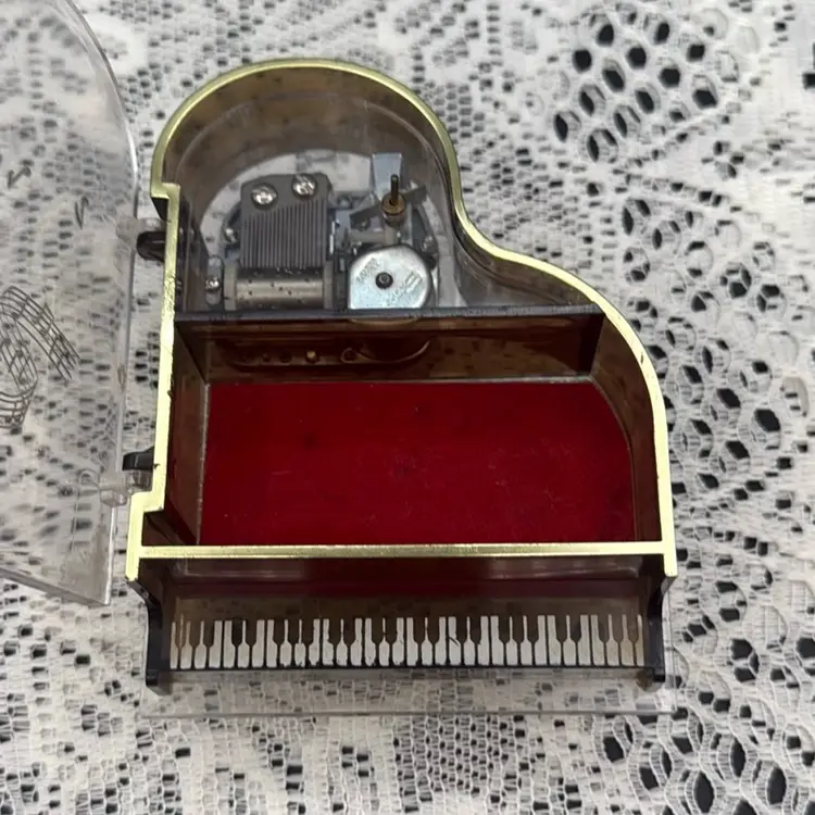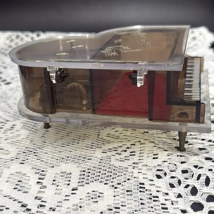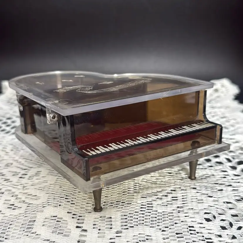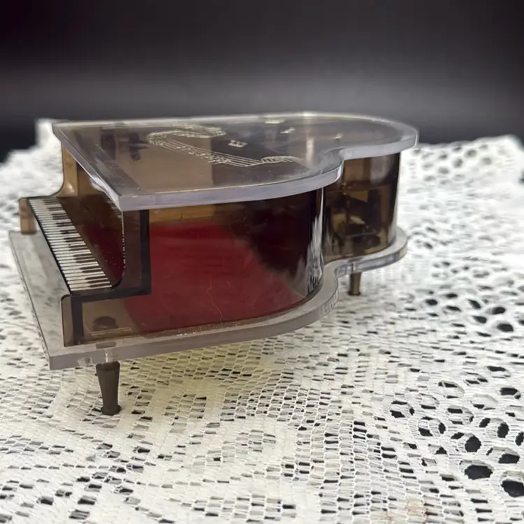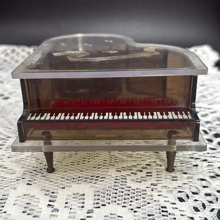 Vintage Toyo Grand Piano Music Box Lucite and acrylic music box works Minor scratches and wear. Minor rough spots as seen in last two photos. No chips or cracks Measures 6” x 4.75” x 2.5”