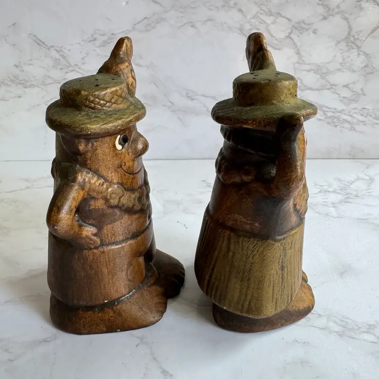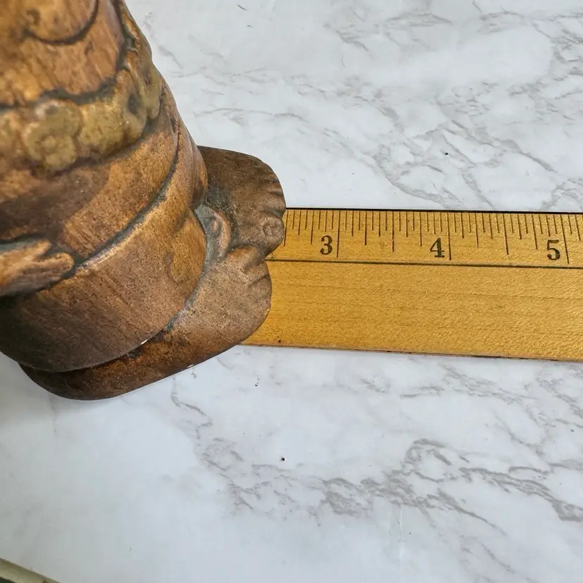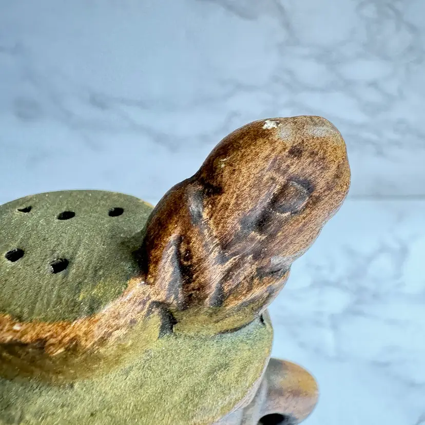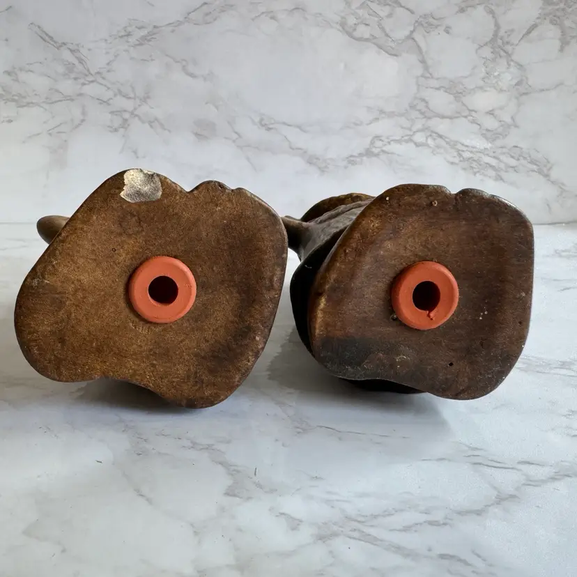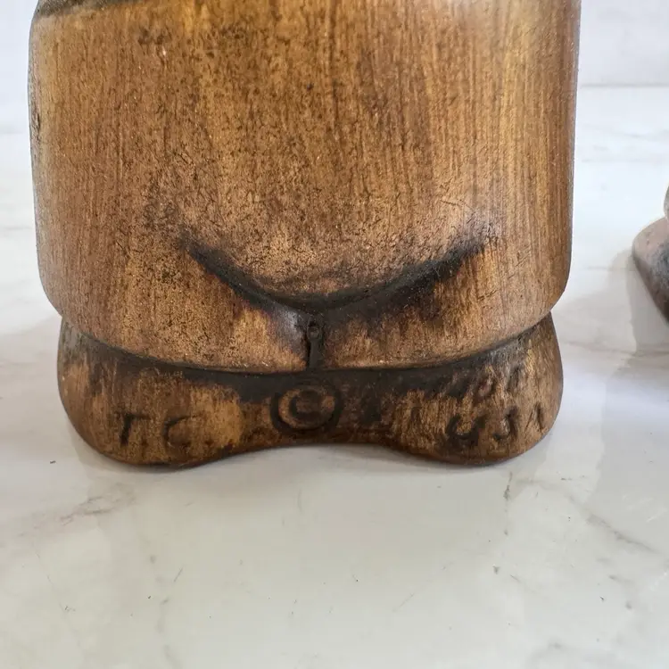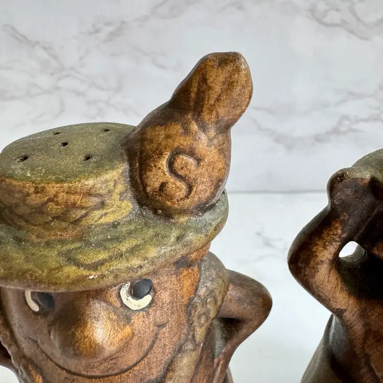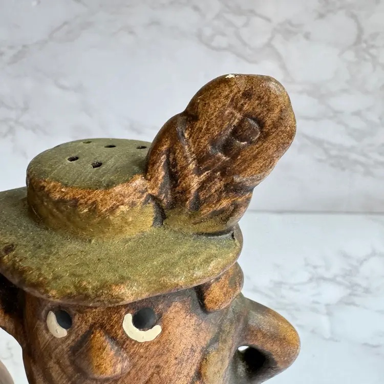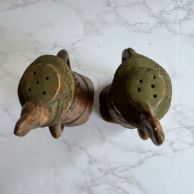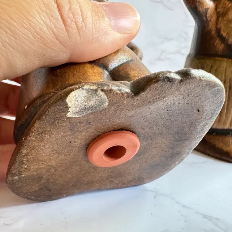 A few minor paint chips that are visible when displayed, one large chip on the underside that is not noticeable when displayed. No crack, original stoppers. Measure about 3-1/8” x 2-1/2” x 5”h