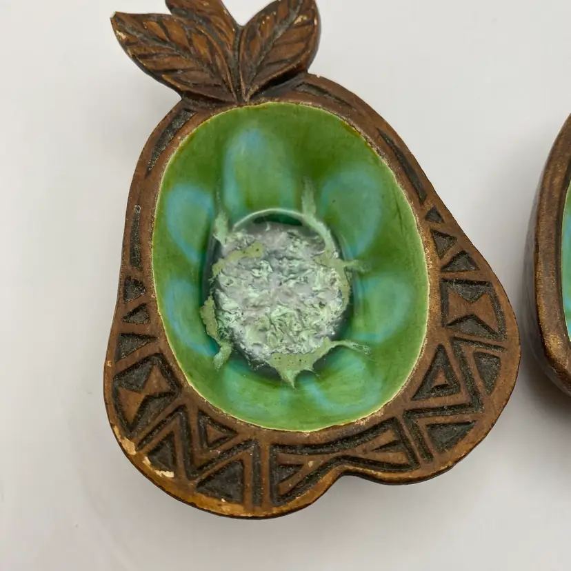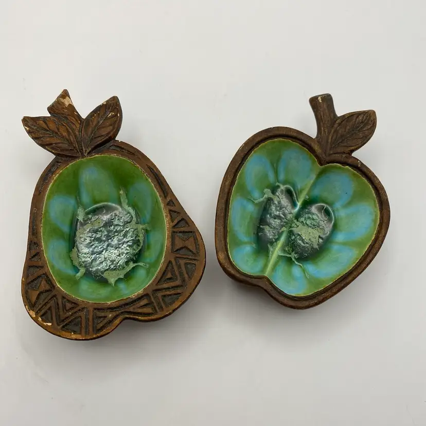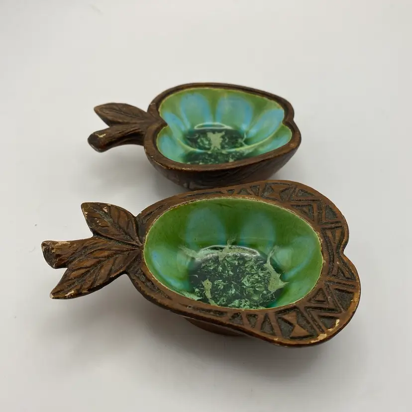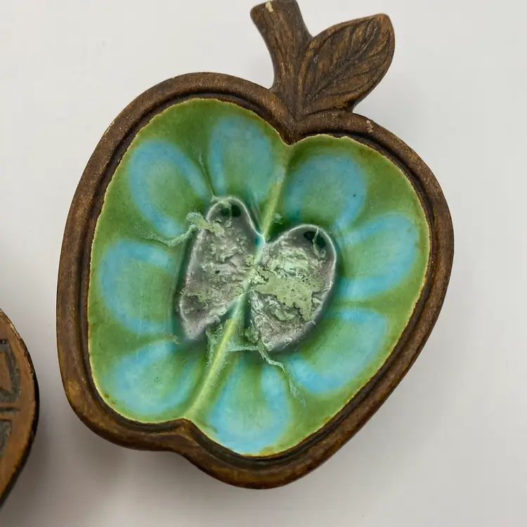 Vintage - Treasure Craft - Turquoise and Brown - Apple and Pear- Small Trinket Dish - 1962 - California