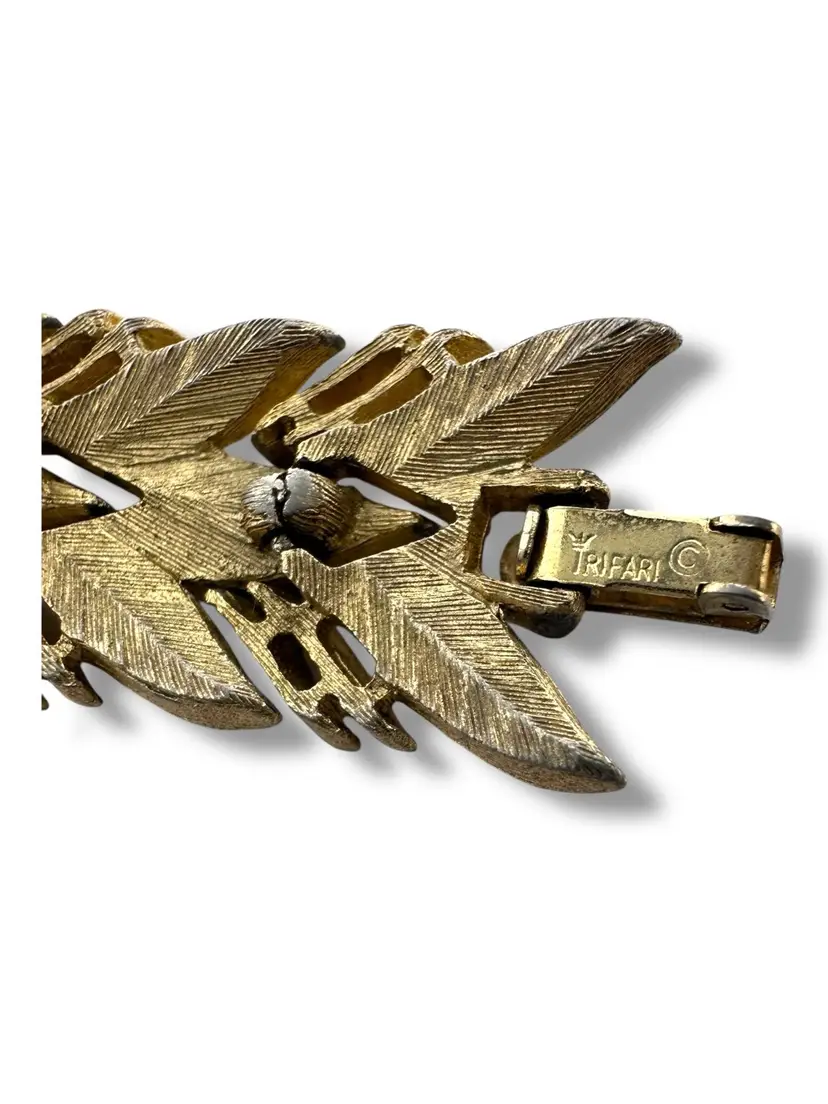 Vintage Trifari 1950s Gold Link Bracelet. 7 Inches Length. Signed