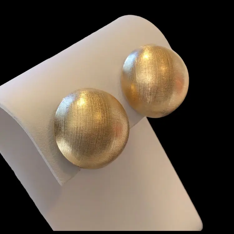 Satin texture gold tone clip on dome/ button style, 1960s, great condition. 7/8”. #327