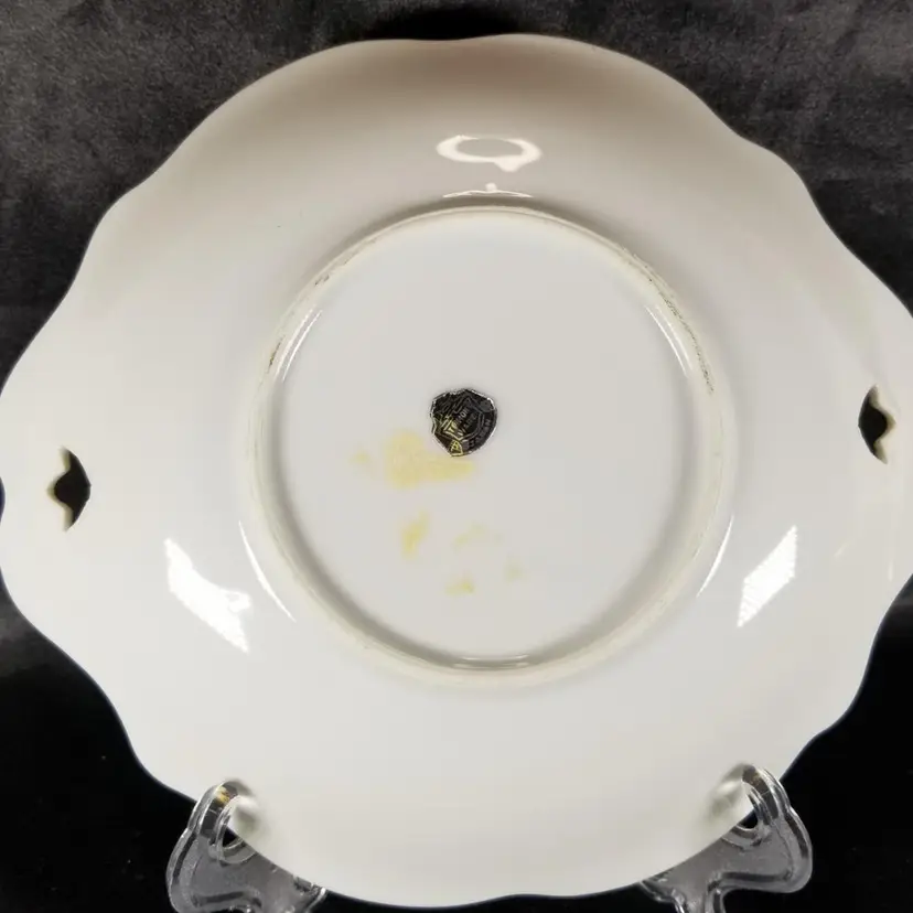 Vintage Trimont Ware Violet & Butterfly Shallow Porcelain Bowl is 8 1/4" wide x 1 3/8" tall. A beautiful bouquet of violets sits in the middle of this dish surrounded by gold butterflies. It has cut-outs at the handles and a gold splatter trim. It has most of the original Trimont sticker. No chips, cracks, or repairs. Please view pictures and feel free to ask questions.