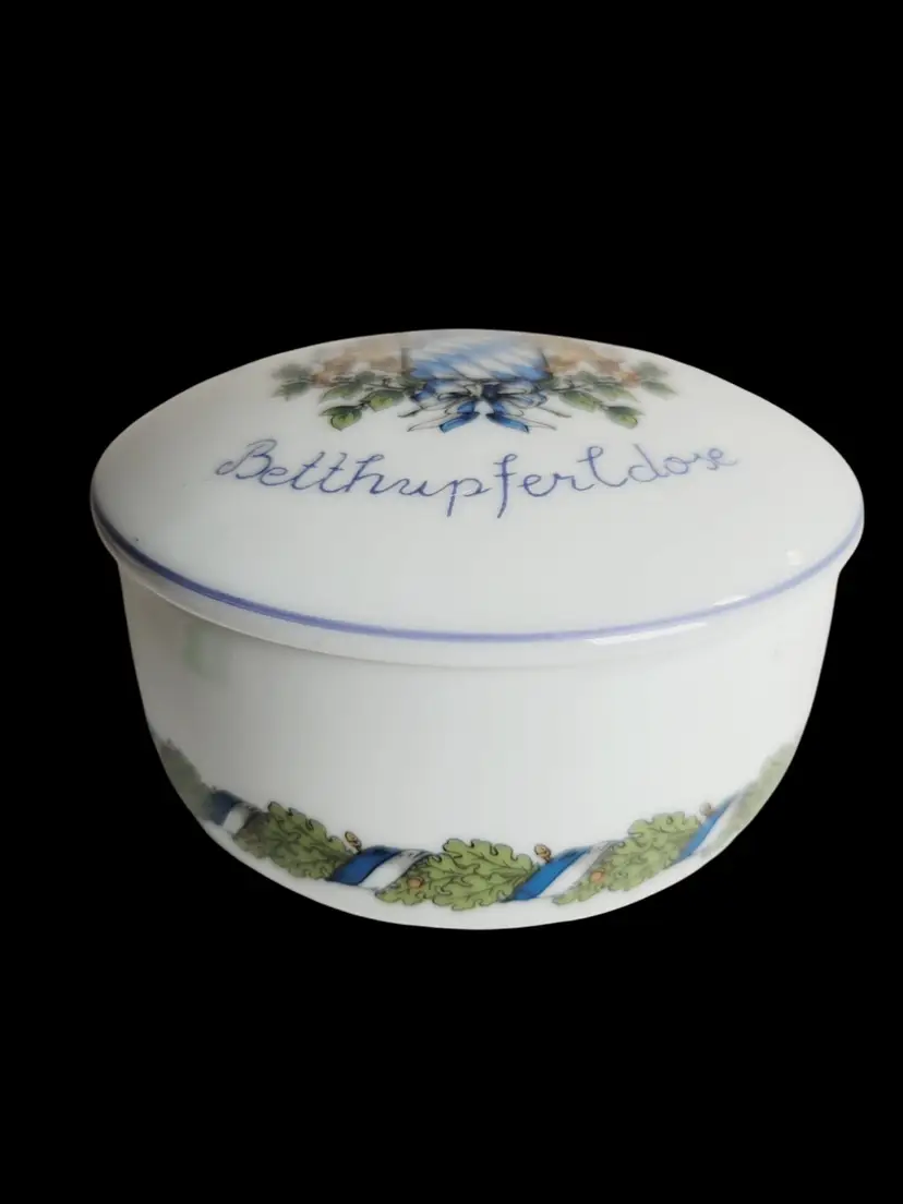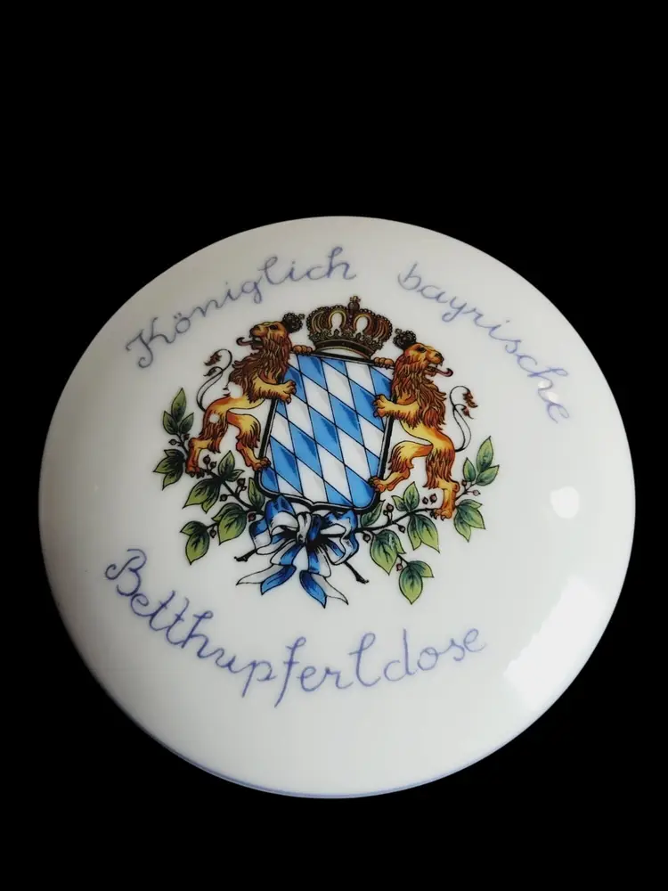 Königlich bayrische Betthupferldose, Translation: Royal Bavarian Bedtime Snack No chips or cracks, excellent condition 1.25" Deep, 3.5" Wide