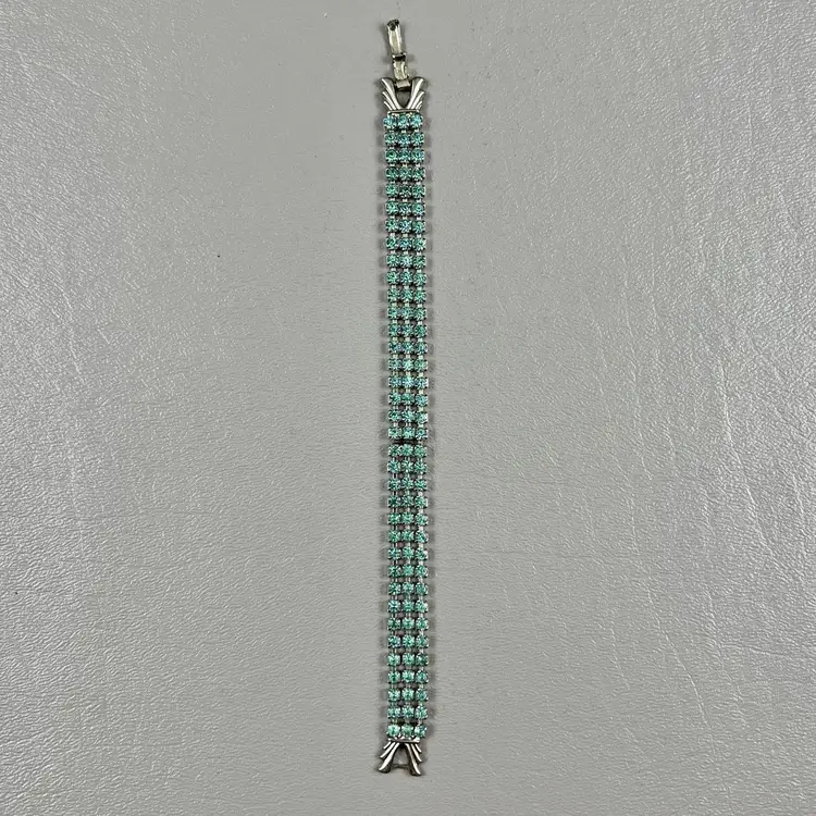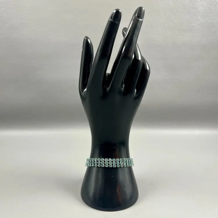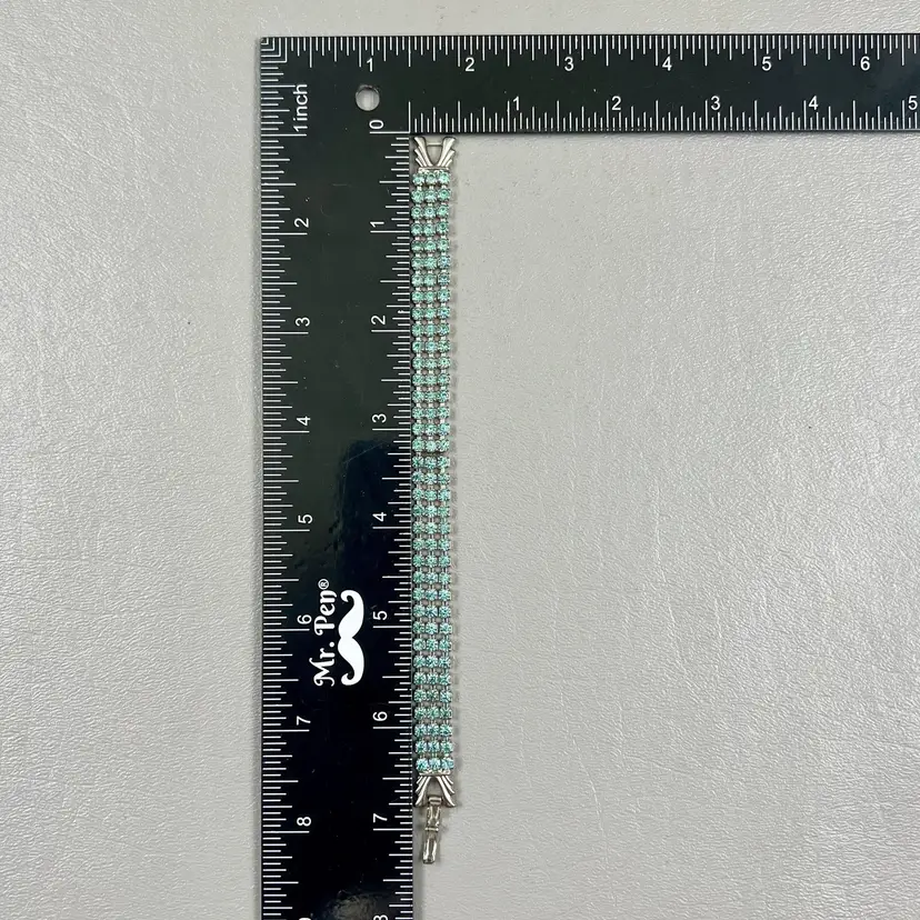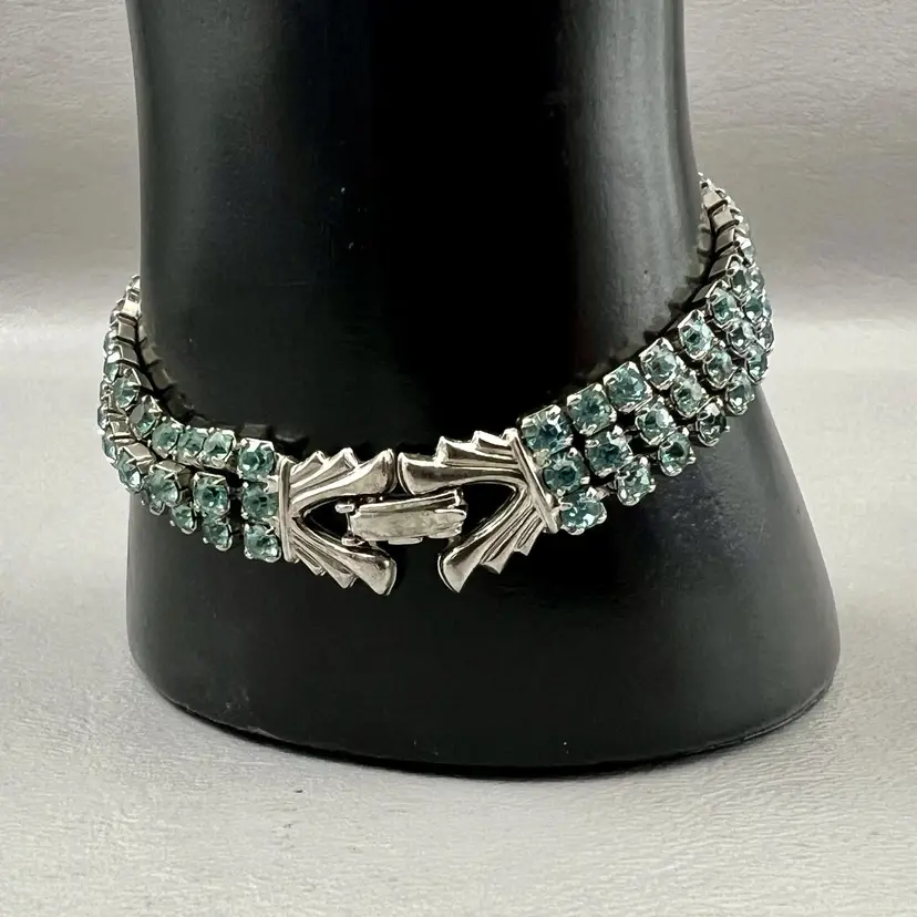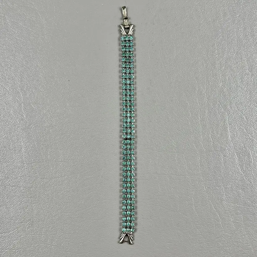 Vintage Triple Row Blue Rhinestone Closed Back Bracelet Faceted Prong Set Silver Tone 7"