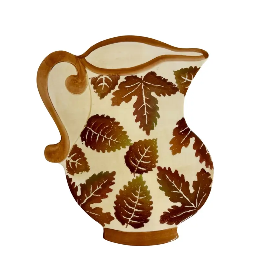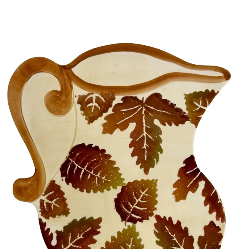 Vintage Large Ceramic Teapot Trivet/Hot Plate/Wall Art Made In Italy By CERAMICHE LEONARDO Fall Leaf Pattern In Earth Tones.