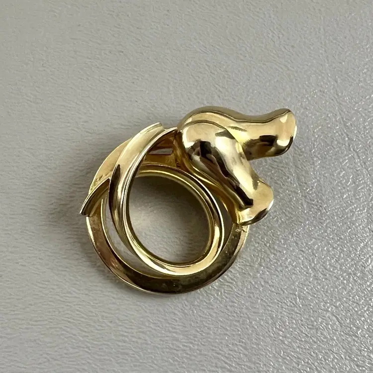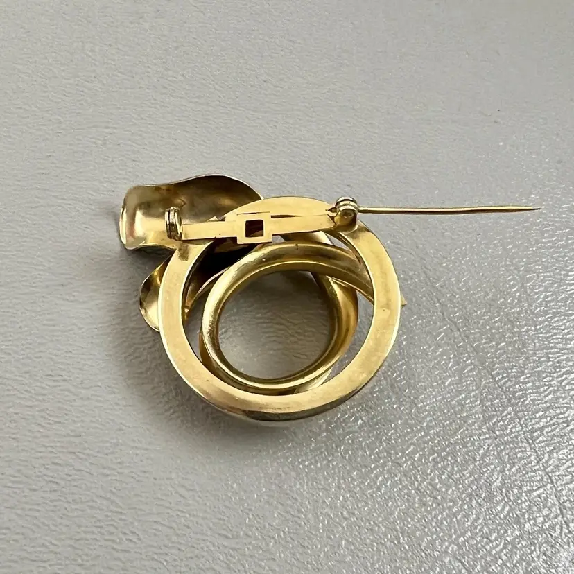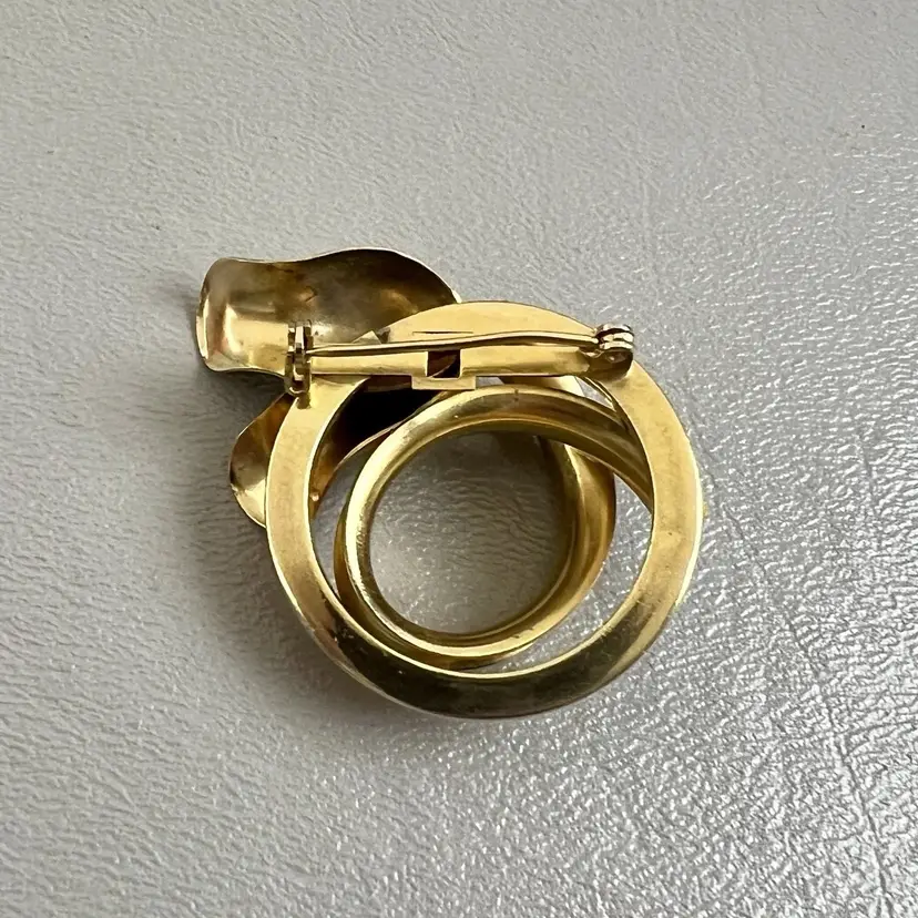 Vintage Tulip Infinity Circle Gold Tone Brooch Flower Floral 1.5" Metal