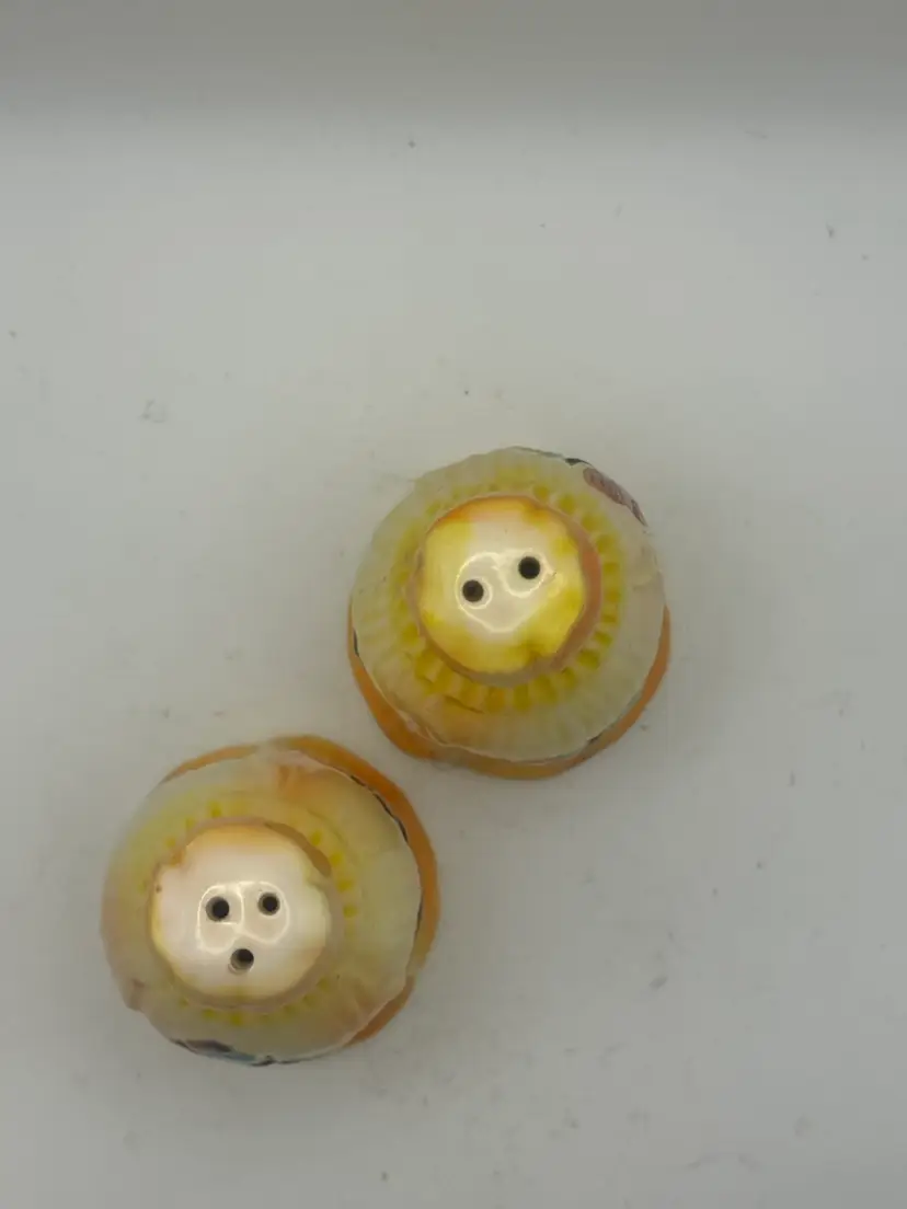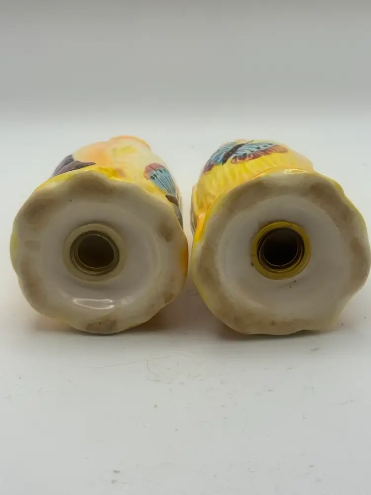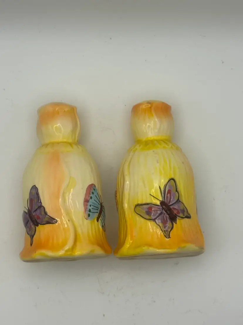Vintage Tulip Shaped Salt And Pepper Shakers With Hand Painted Butterflies. 2”
