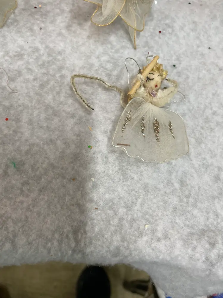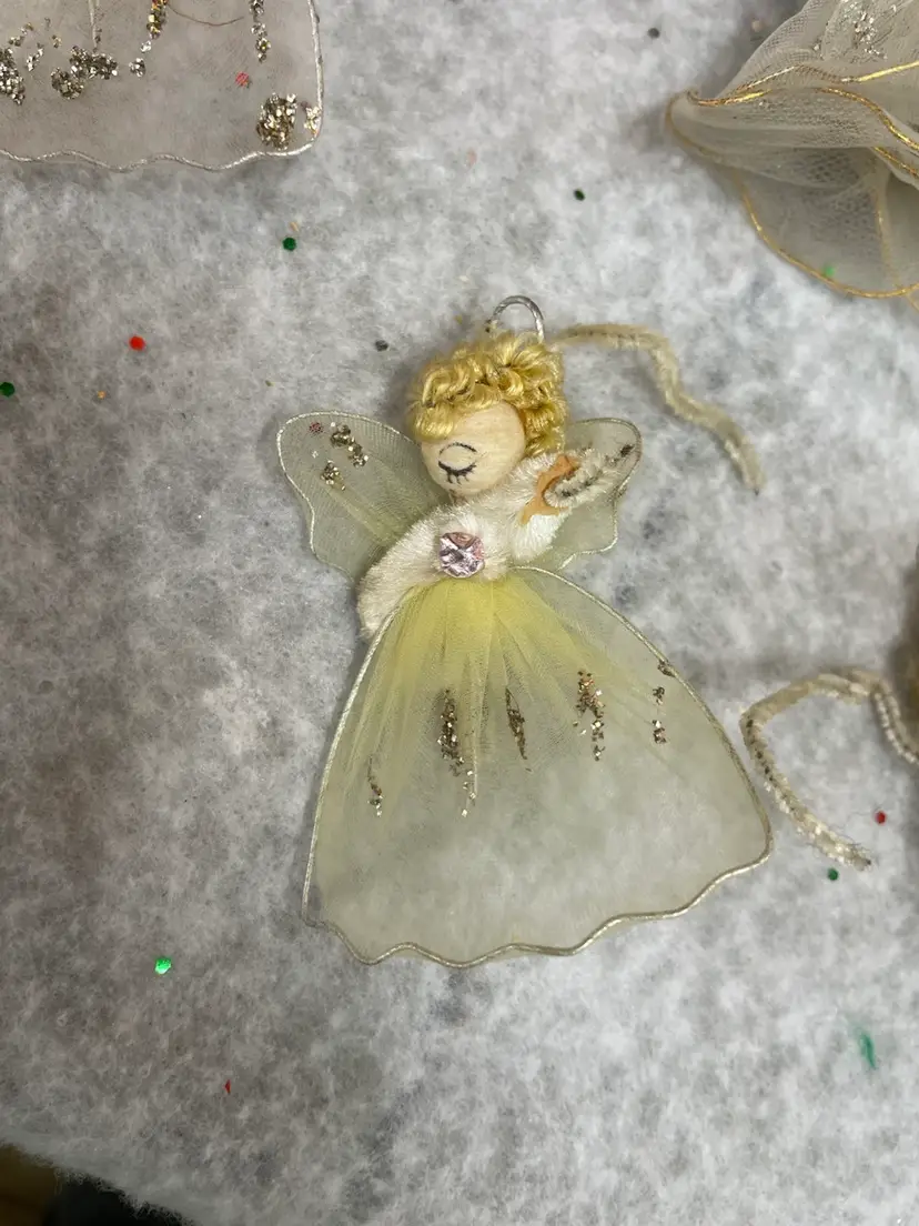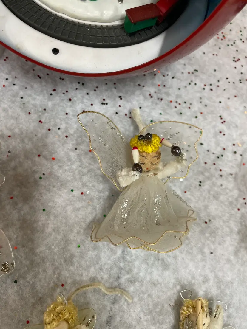 Set of 5 Vintage Handmade Tulle Angels. Two larger and three smaller as noted in picture.