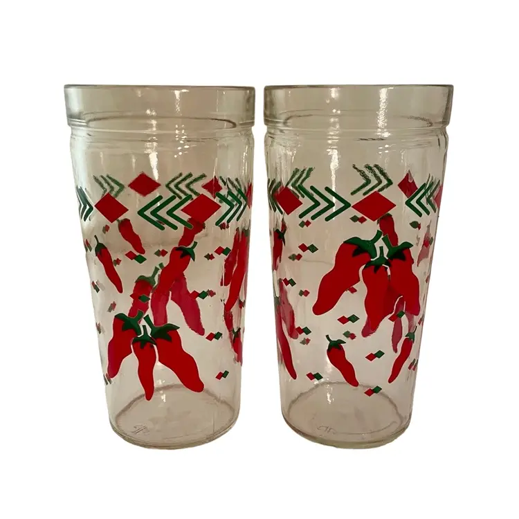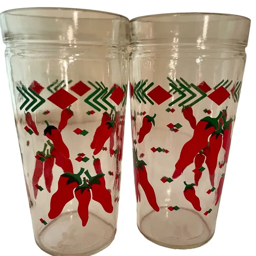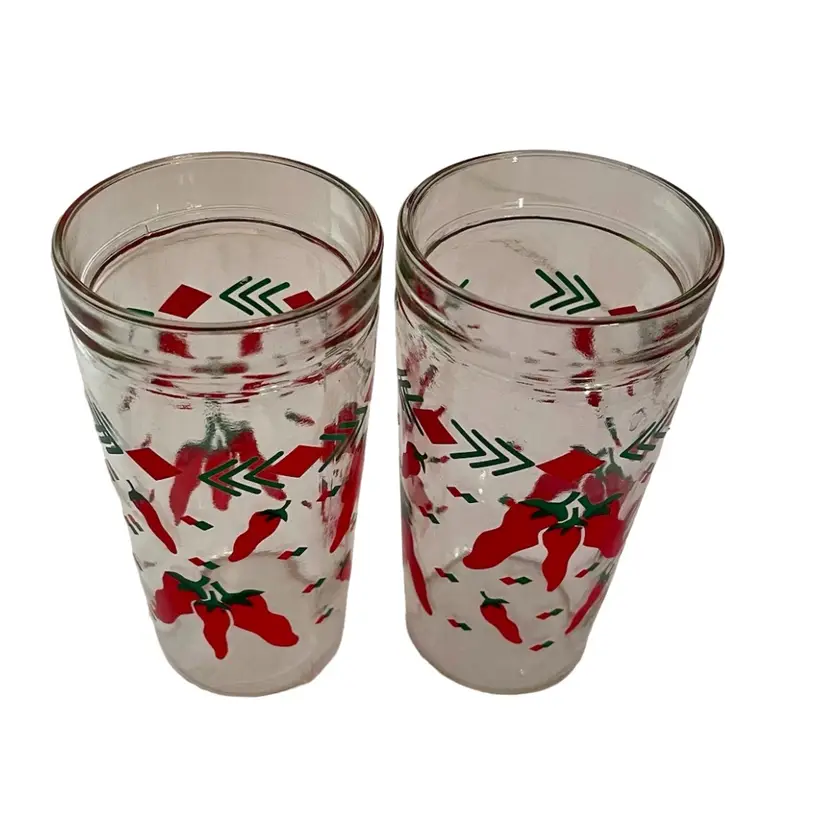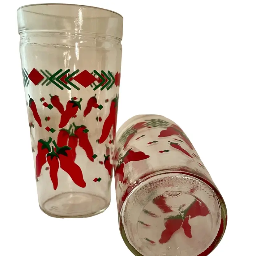 2 Vintage Tumblers Anchor Hocking Red Chili Pepper Glasses Southwestern Decor. Condition is Used. Normal wear. See pics. Shipped with USPS Mail