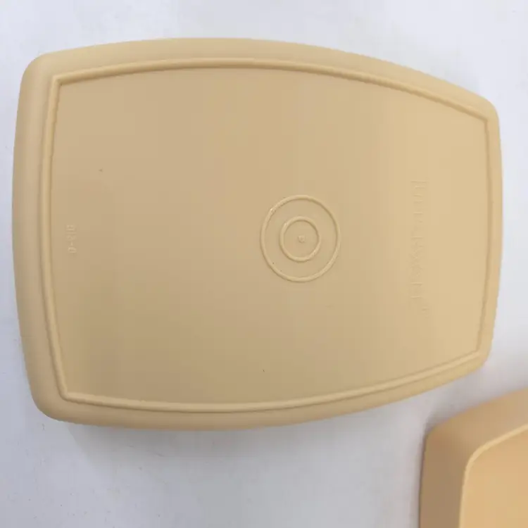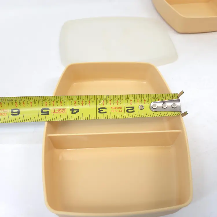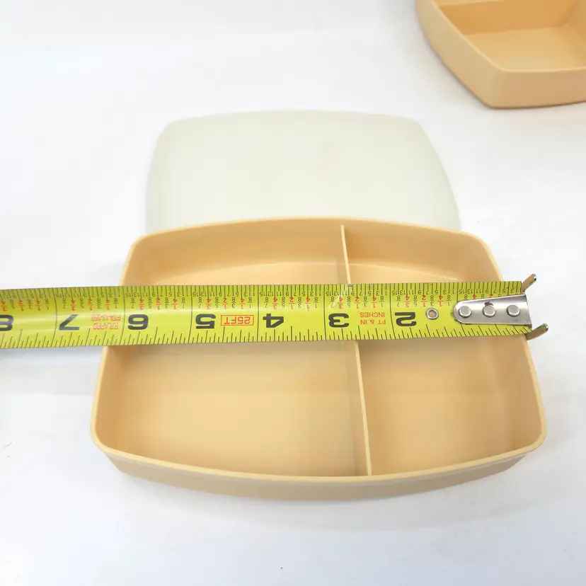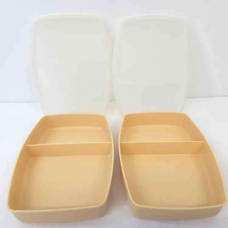 Vintage Tupperware (2) Divided Lunch Snack Container 813-6 Tan Sheer Lid 814-6