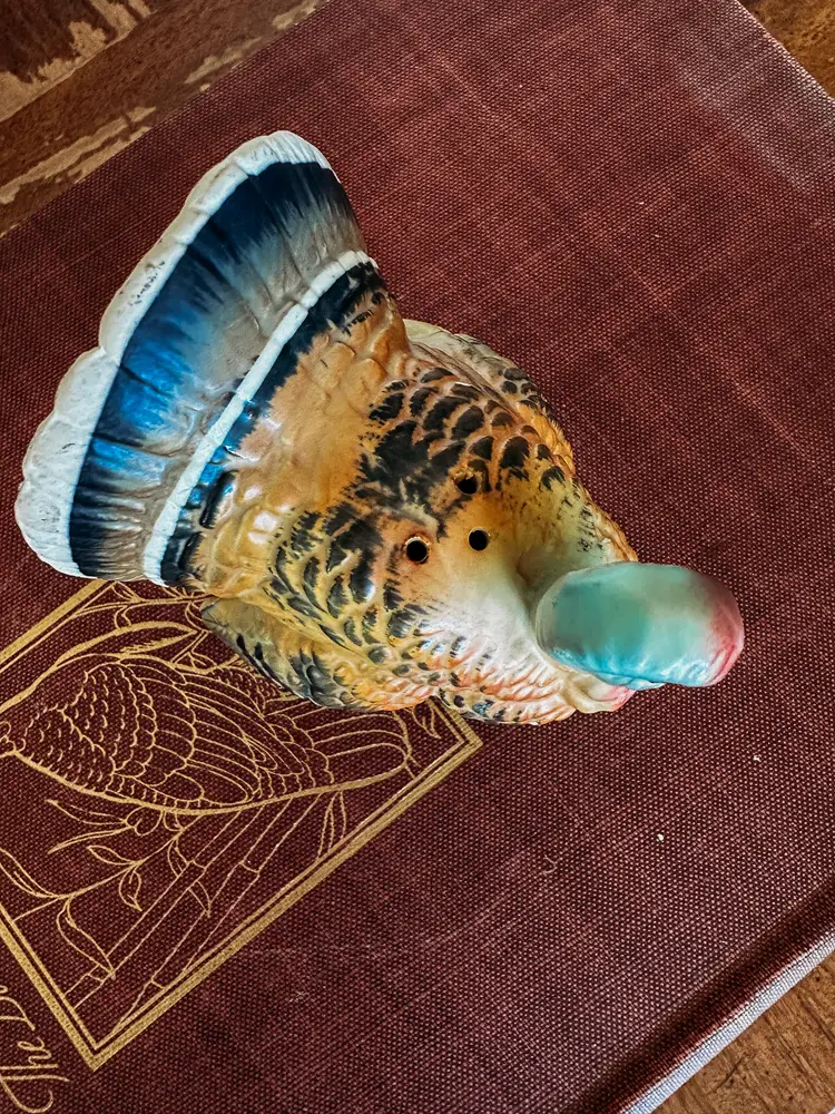 1960s Napcoware C-5993 made in Japan Male Turkey salt shaker. Missing it's partner - the hen pepper shaker. One chip on the bottom front as seen in the photos but not very noticeable. Would be a perfect additional to any Fall/Thanksgiving Decor! 4"