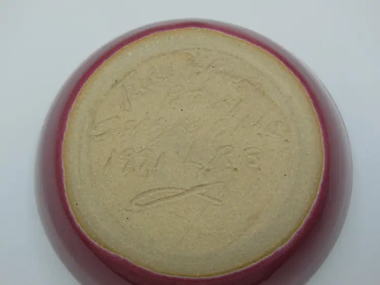 This is a Vintage Turn and Burn Art Pottery Seagrove NC Dark Pink Glazed, Apple Baker, Signed, 1991 L.R.B. It would also make a cute ring/bracelet holder for next to your sink! It measures: 5.5" diameter 1.75" high. It is in great condition. Please see all pics, as they are part of the description.