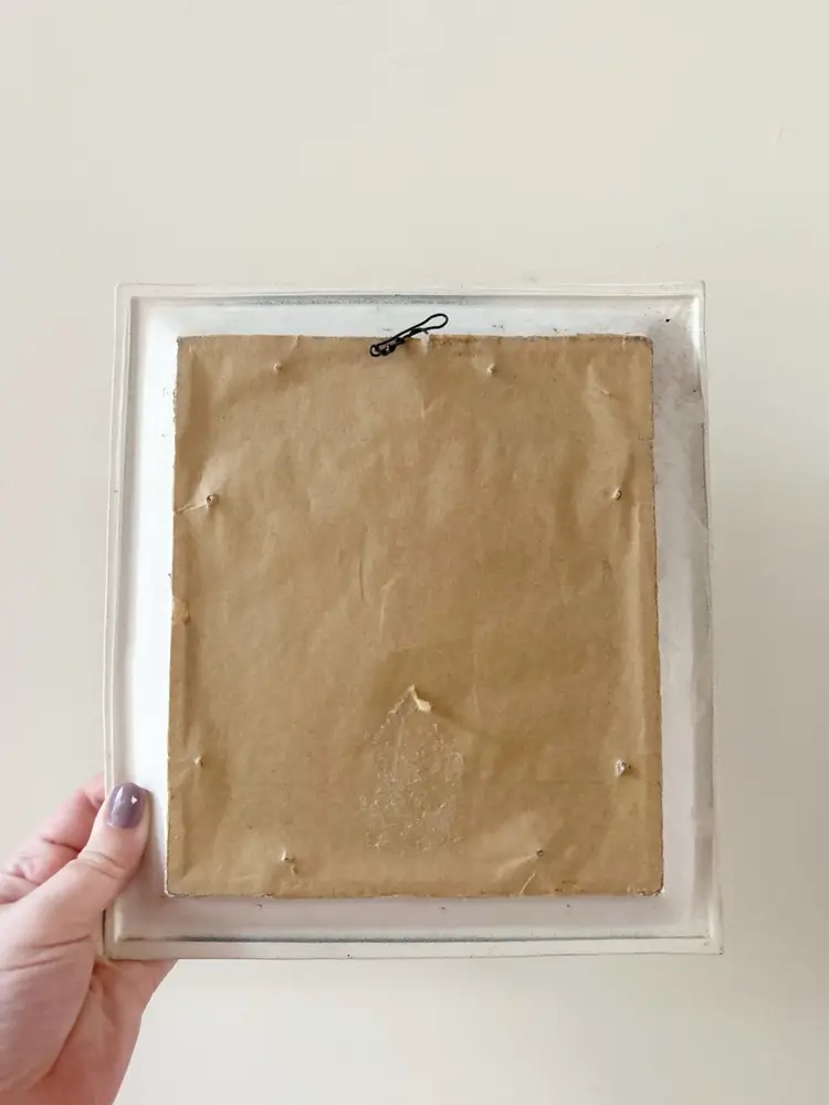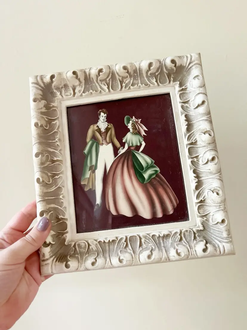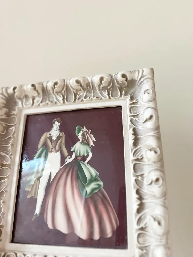 Vintage Victorian couple in white plastic frame. Frame measures 9 x 10 inches.