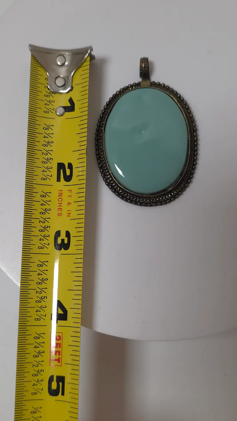 This Vintage Turquoise and Silver Cabochon Pendant is a striking statement piece of fashion jewelry perfect for women looking to add a unique touch to their outfit. The blue cabochon stone set in silver creates a classic and elegant look, with a vintage flair that adds a touch of vintage charm to any ensemble. This pendant is a bold choice for those looking to make a statement with their jewelry and are looking for a piece that is both stylish and timeless.