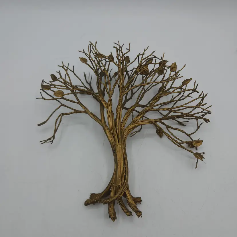 Vintage Twisted Metal Tree Wall Art Sculpture with Bird. Great condition. It is 8.5" tall and 9" wide.